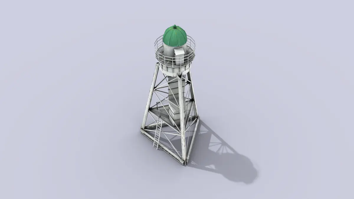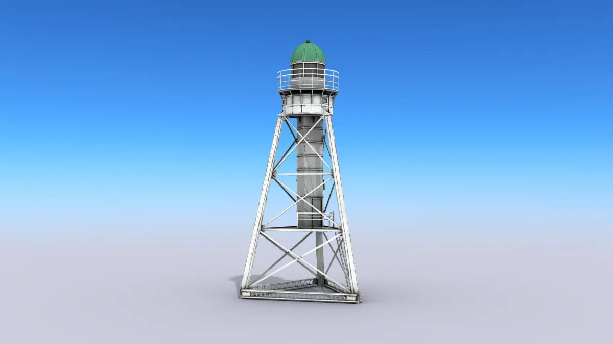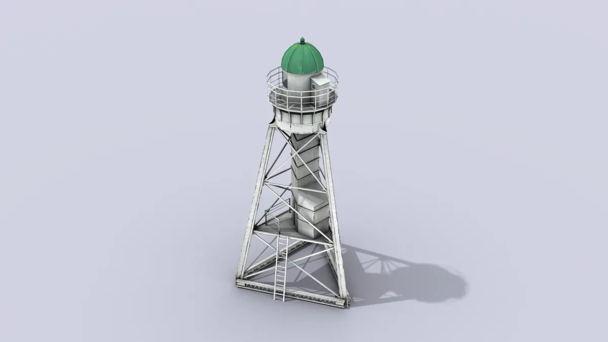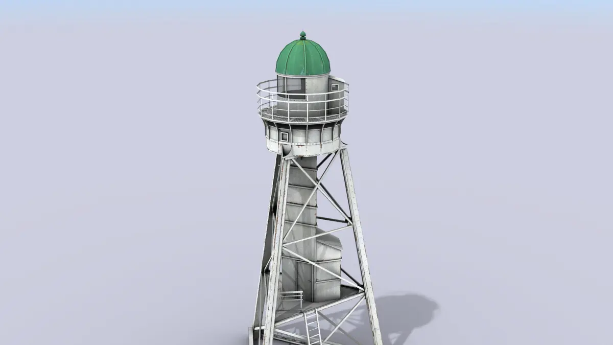 High-quality low-poly 3D model of White Metal Lighthouse.