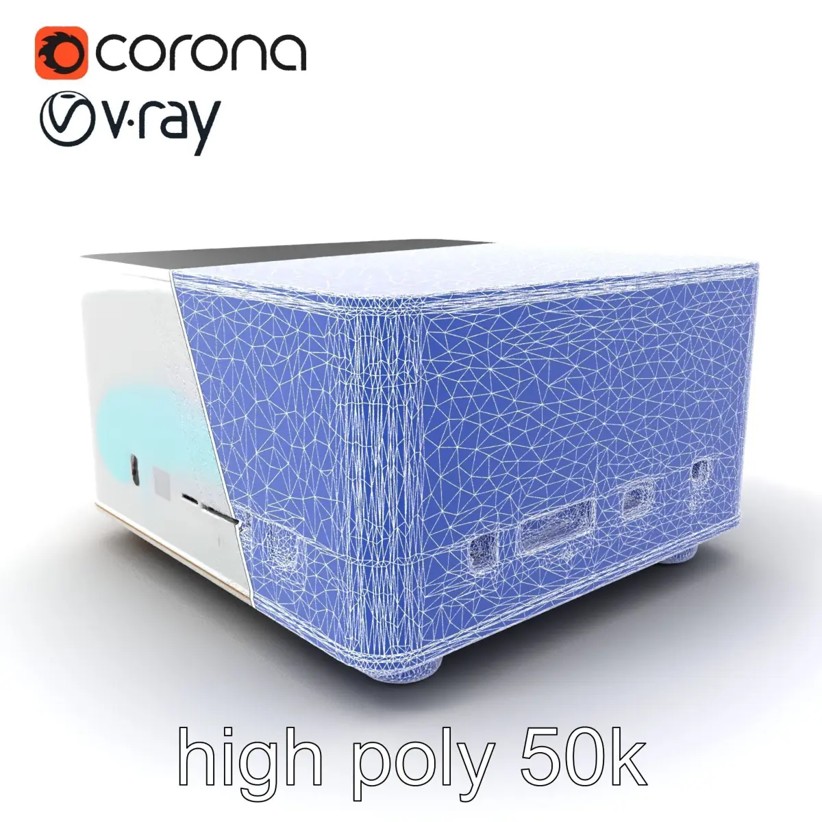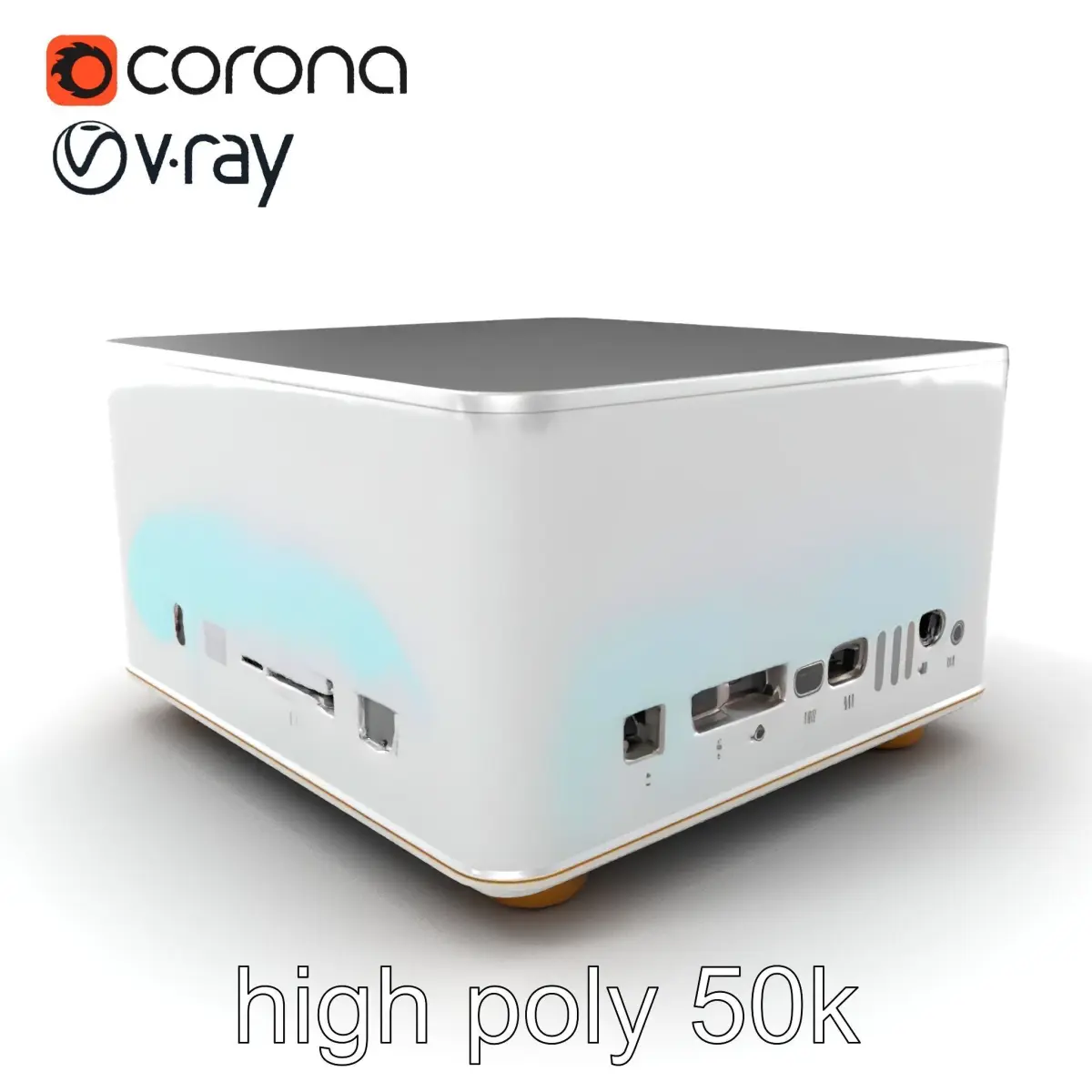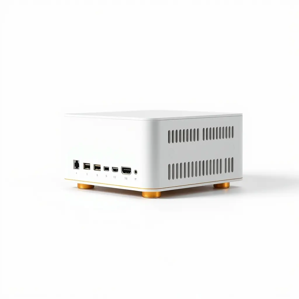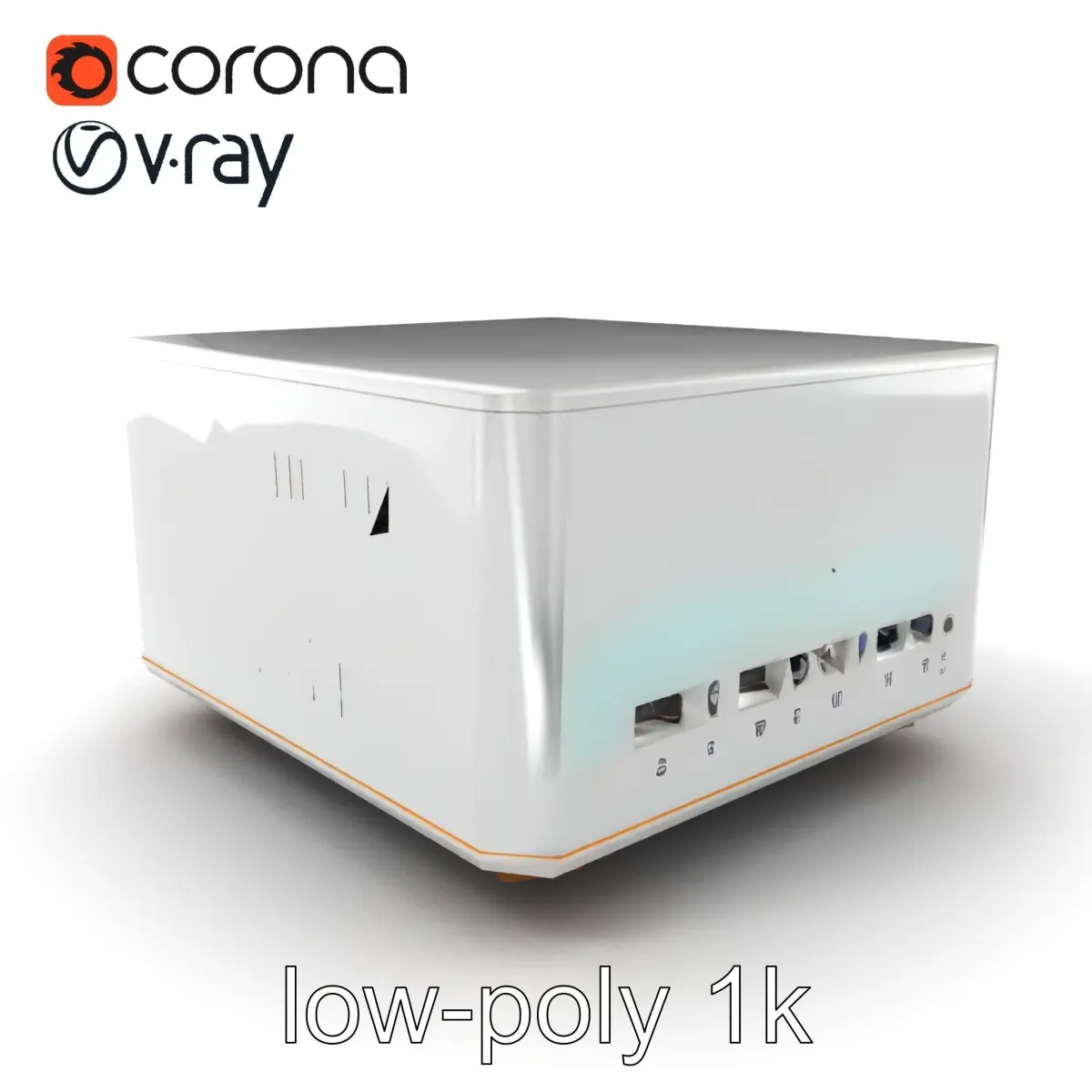 This sleek white Mini ITX PC case model is perfect for designing compact and cost-effective computer setups. Ideal for creators looking to visualize minimalist and modern home setups, its open mesh design and gold highlights are both stylish and functional.