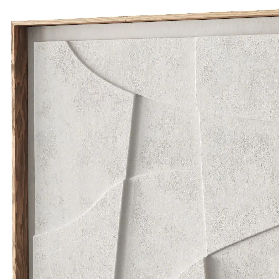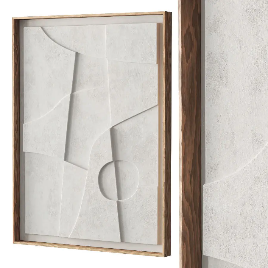 Set of two contemporary relief artwork in wooden frame.