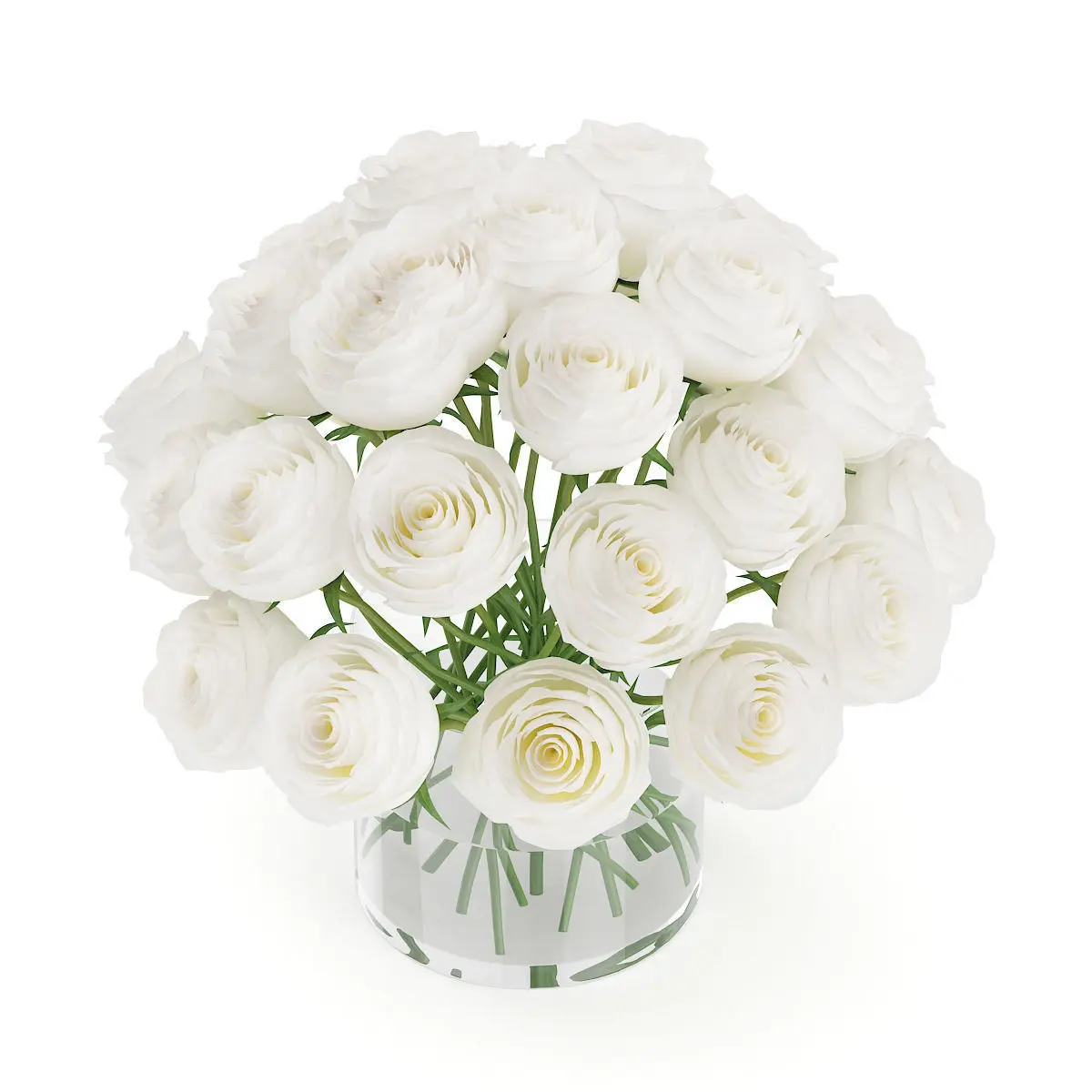 White Roses in Glass Vase 3D model