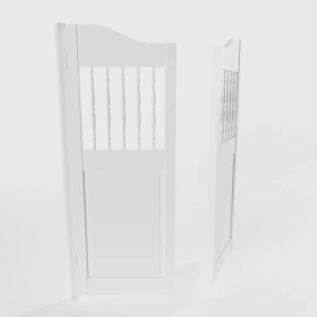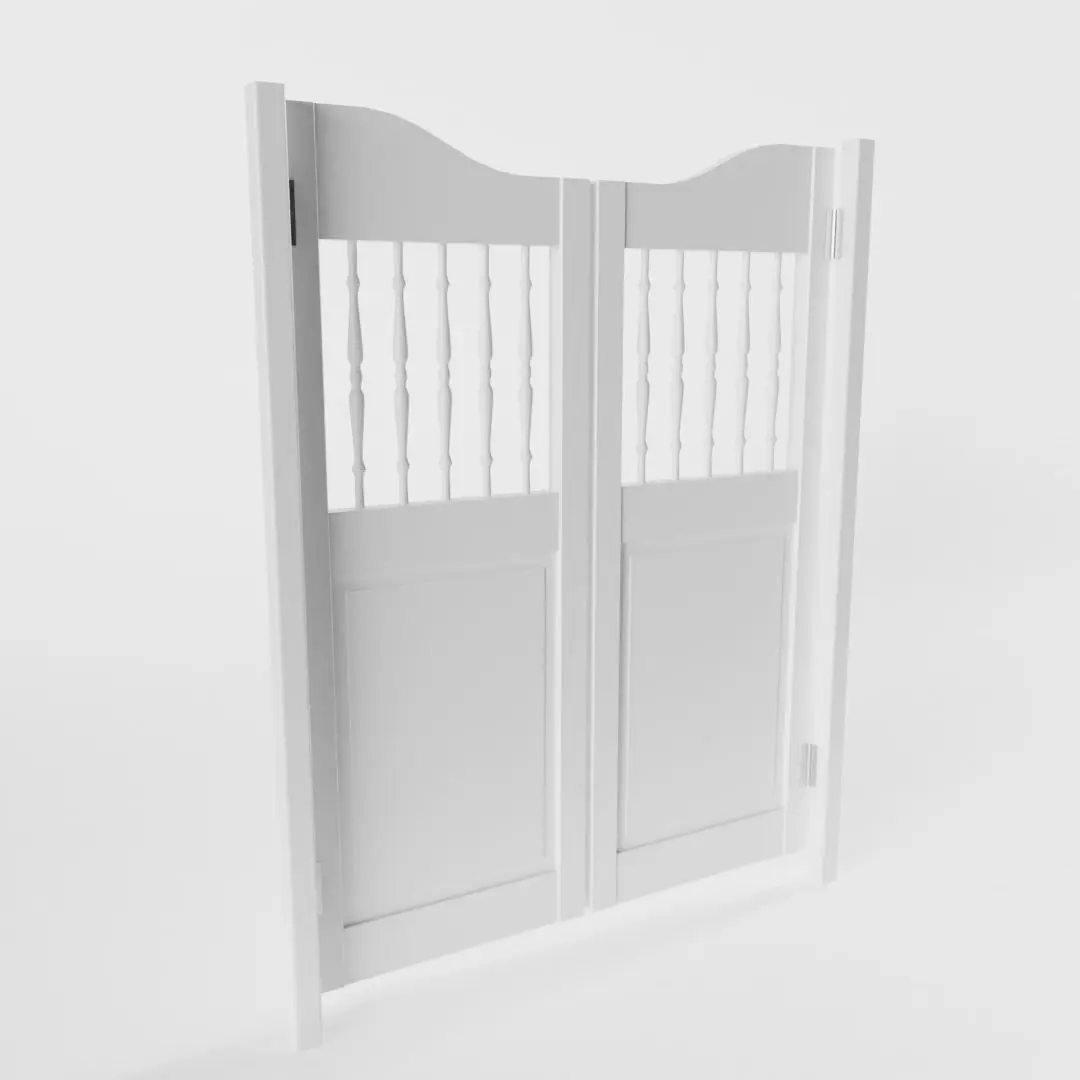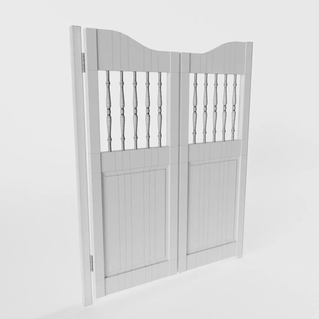 The model has real world scale and measures approximately 6.6 cm in depth, 82.4 cm in width and 104 cm in height (measurements with poles). It consists of three seperate, but grouped and parented meshes: White Saloon Door, Door_left and Door_right. Exception: in the .ply-file they are all joined together.