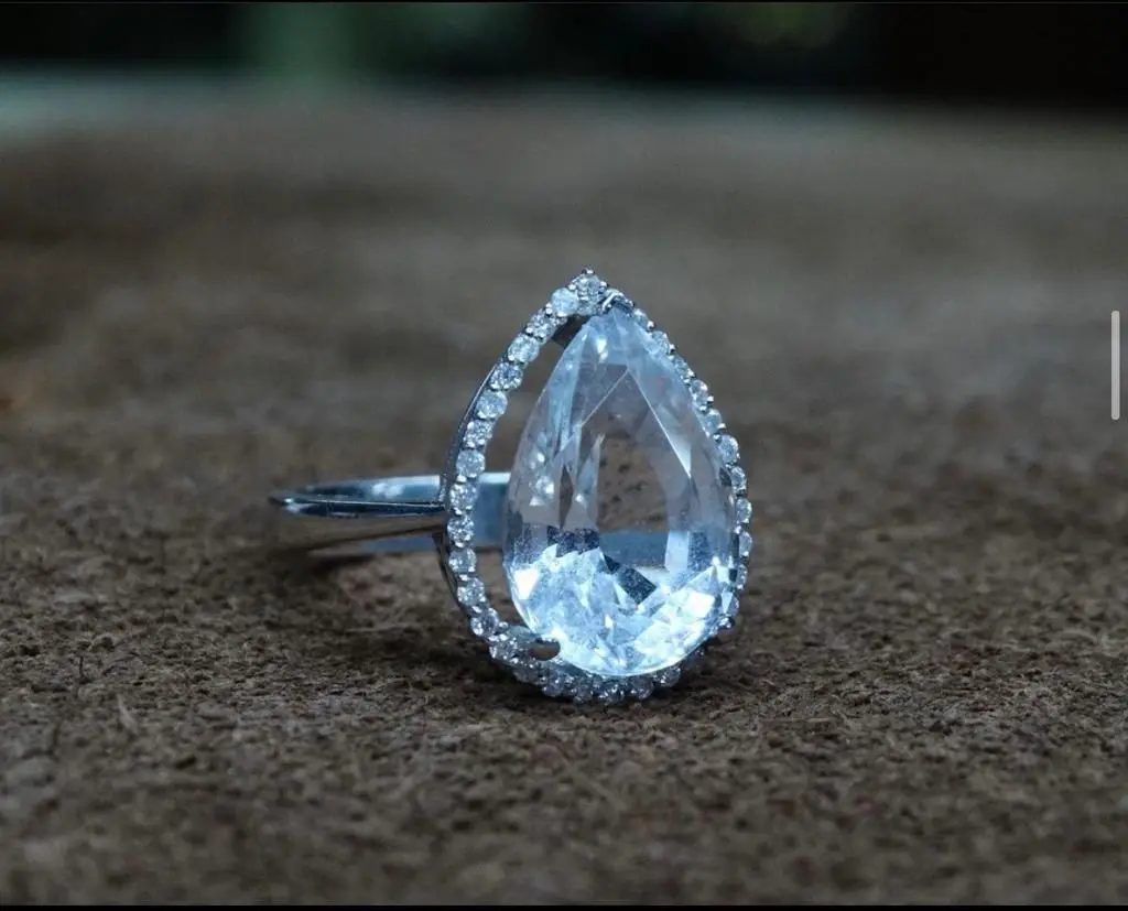 White Sapphire Luxury Golden Ring with Small Diamonds