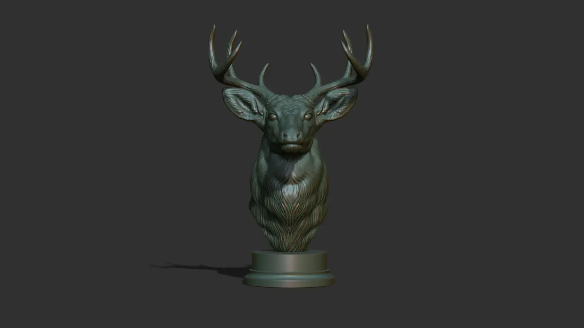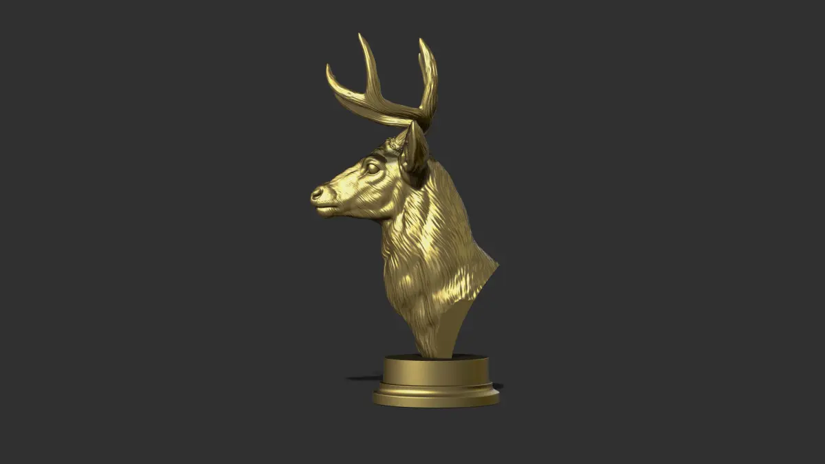 600K STL, OBJ triangulated mesh, White tailed deer bust on the round base merged