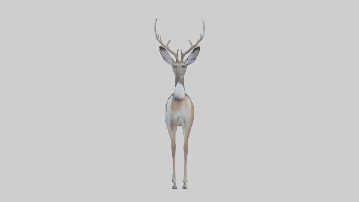 Modelo 3D de alta calidad de un ciervo de cola blanca, perfecto para desarrollo de juegos, animaciones y simulaciones de vida silvestre. Formatos de archivo disponibles: FBX, OBJ, STL, GLB, USDZ, BLEND.