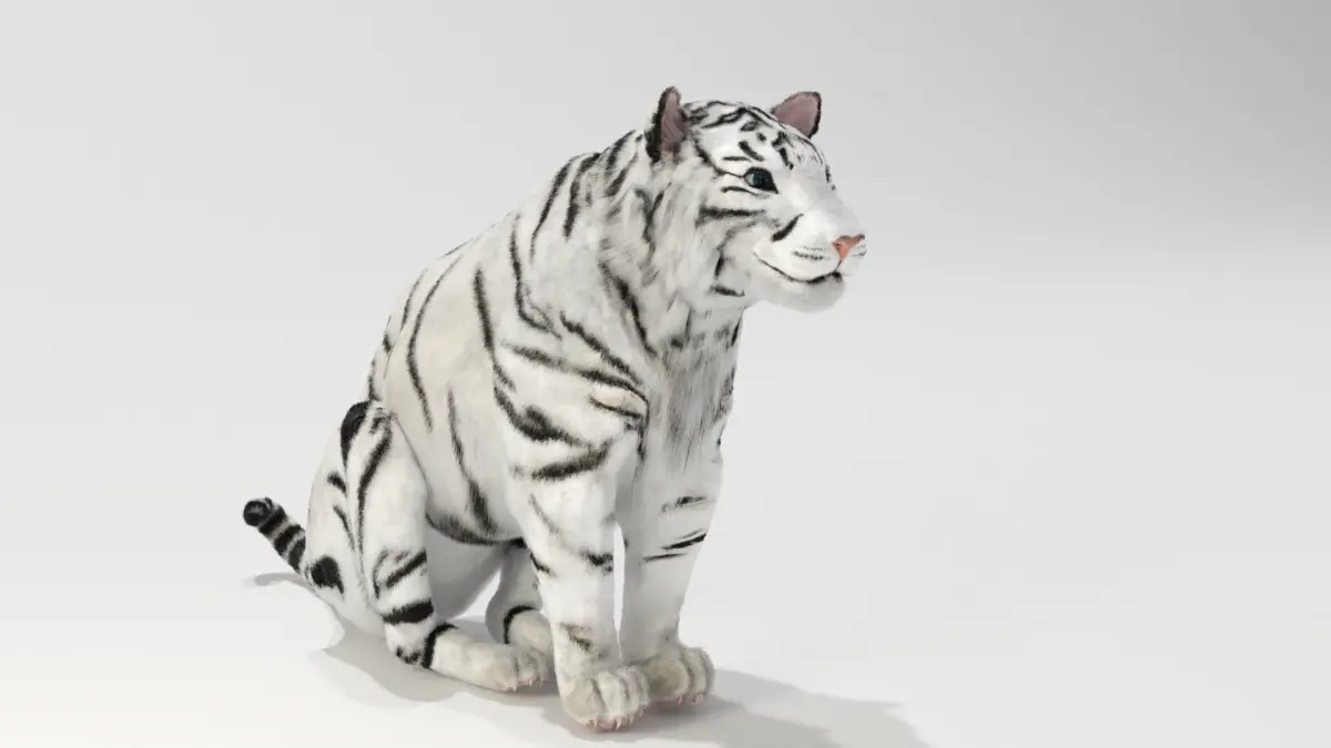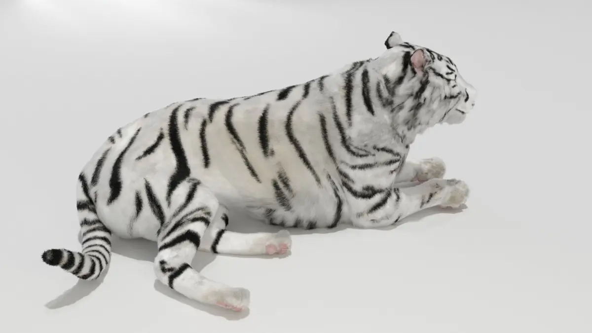 This is a middle poly 3d model of white tiger which is rigged and animated. This model made in Blender by using particle system for the fur. So the fur will work only in Blender, or you can convert it into mesh. Eyes, jaws and tongue made as separate objects.