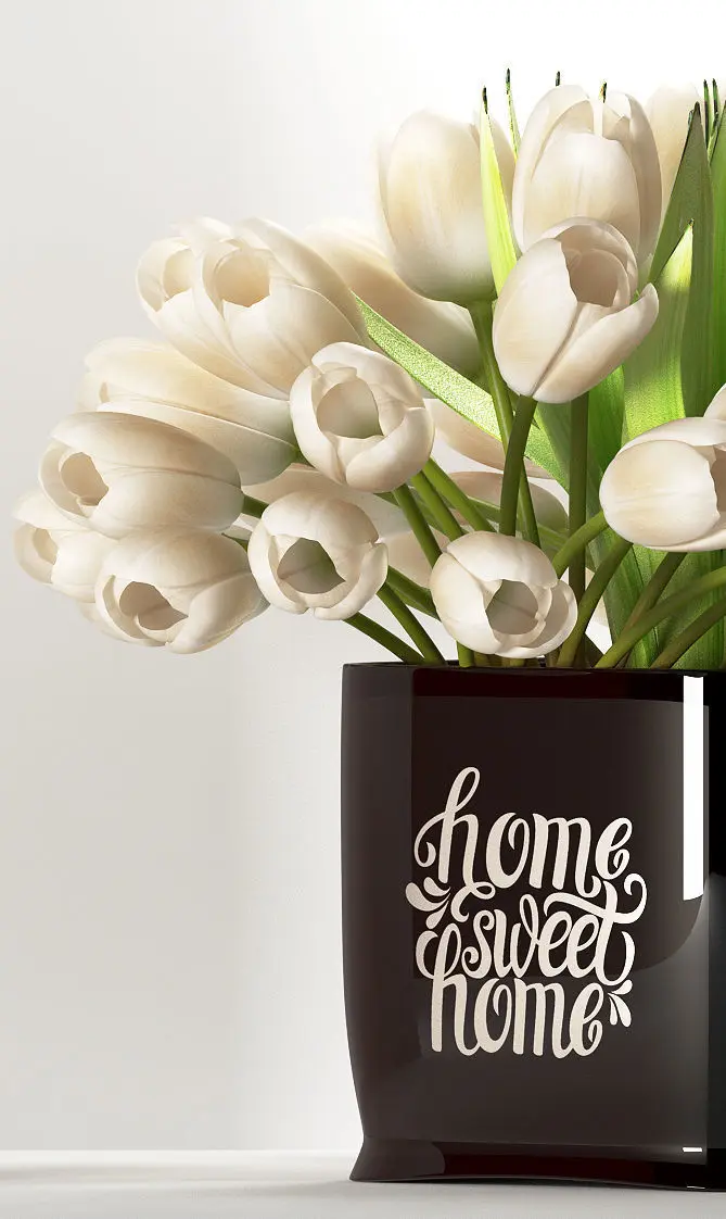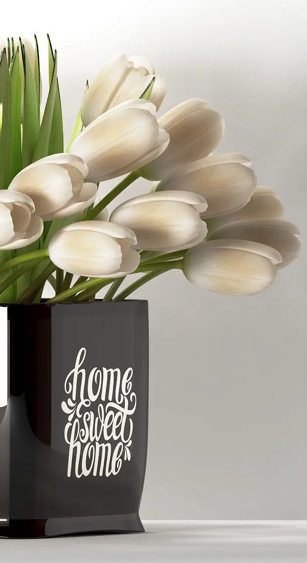 A bunch of white tulips are arranged beautiful in modern ceramic vase.. suits best for your interiors of house and offices too.. created in 3dsmax no plug ins are used