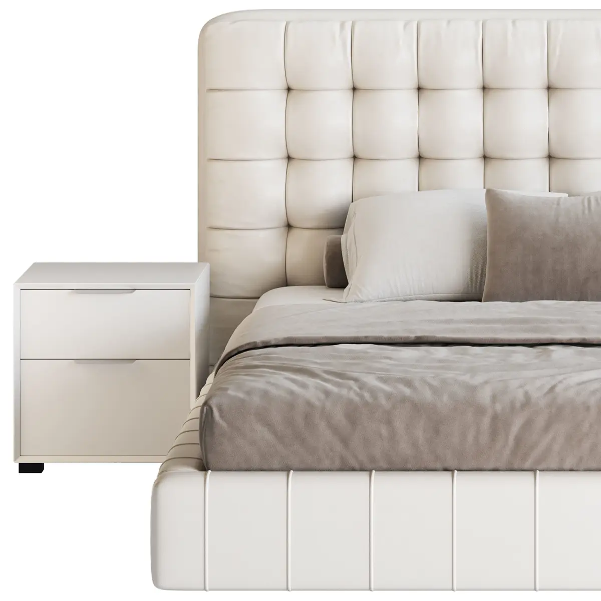 Name: White Upholstered Panel BedType: modelFormat: 3Ds Max 2016Export: FBX, OBJRender: Corona (10)Polys: 715398Verts: 718816Units: MillimetersDimension: 6339.31 x 2276.43 x 1127.15Description: