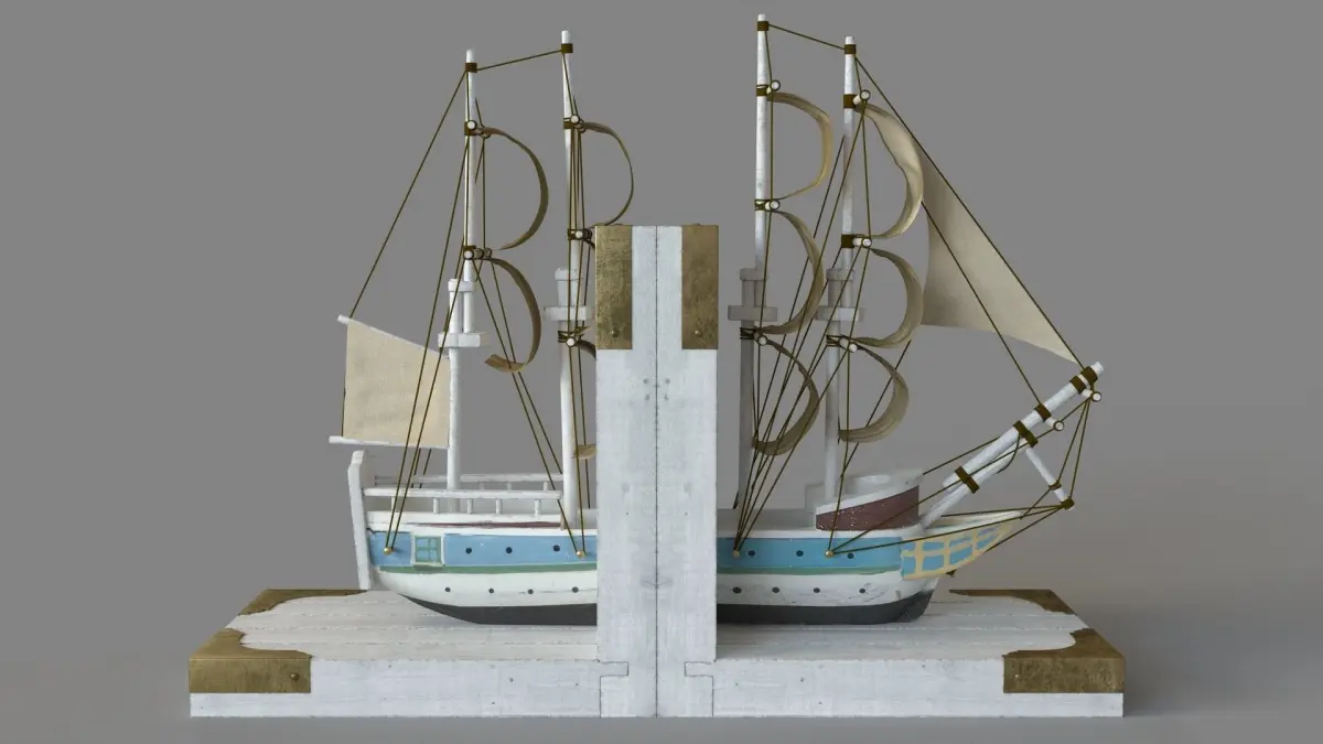 White Wood Coastal Boat Bookends 9 In. X 6 In