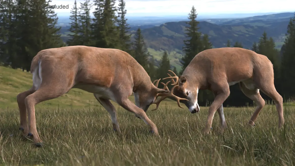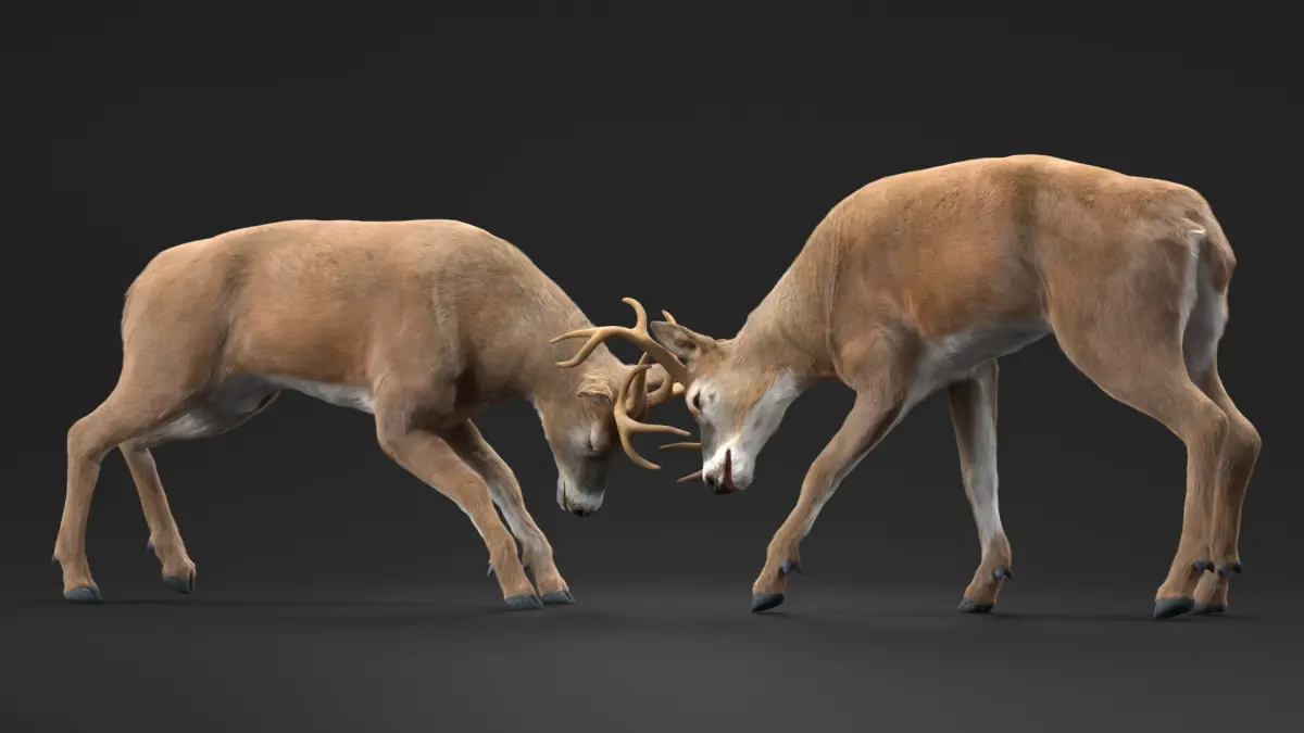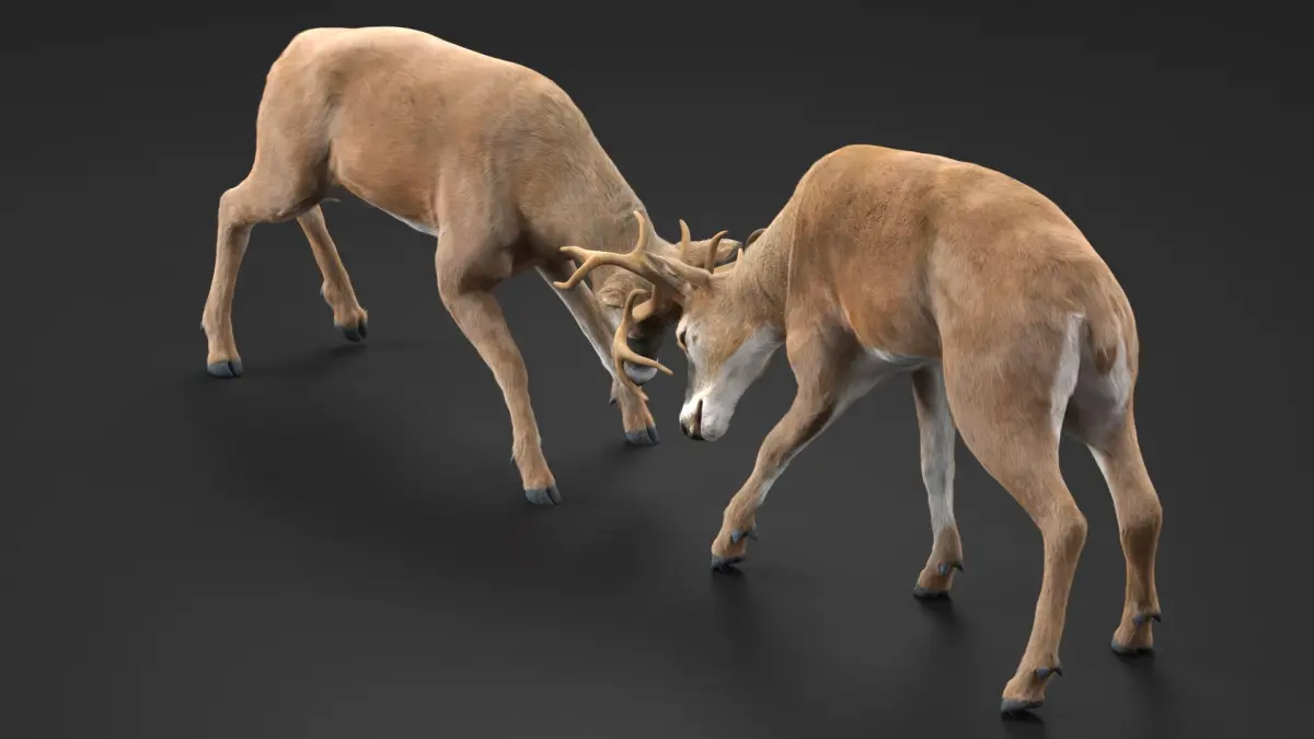 Whitetail Buck Fighting Fur is a three-dimensional model of pair of fighting bucks, which are specimens of white-tailed deer (Odocoileus virginianus, whitetail or Virginia deer).