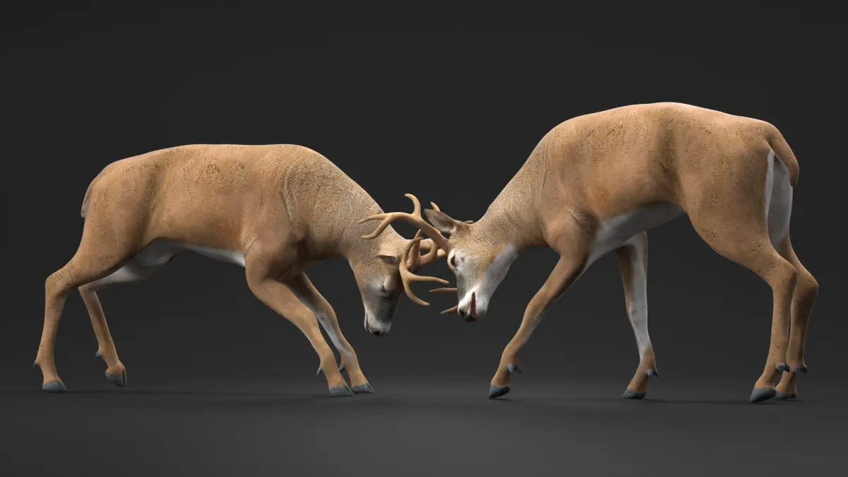 Whitetail Deer Fighting is a high quality, photo real 3d model that will enhance detail and realism to any of your rendering projects. The model has a fully textured, detailed design that allows for close-up renders, and was originally modeled in 3ds Max 2020 and rendered with V-Ray. Renders have no postprocessing!