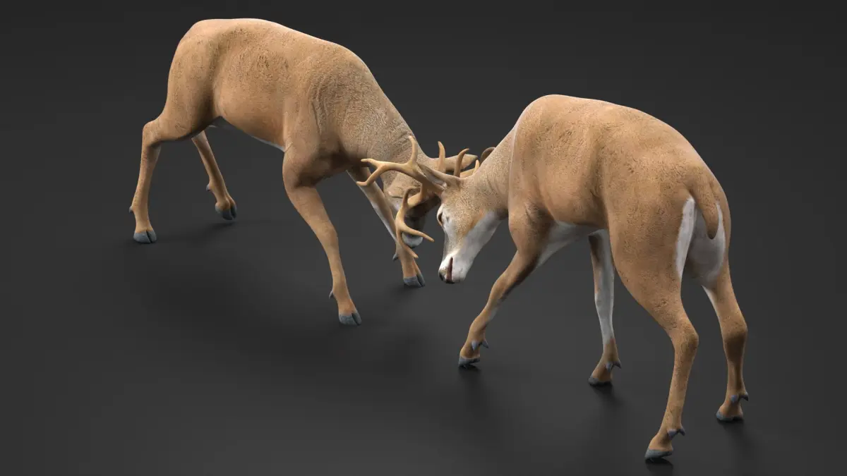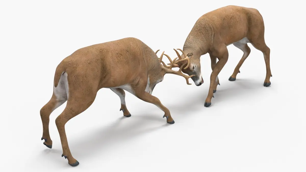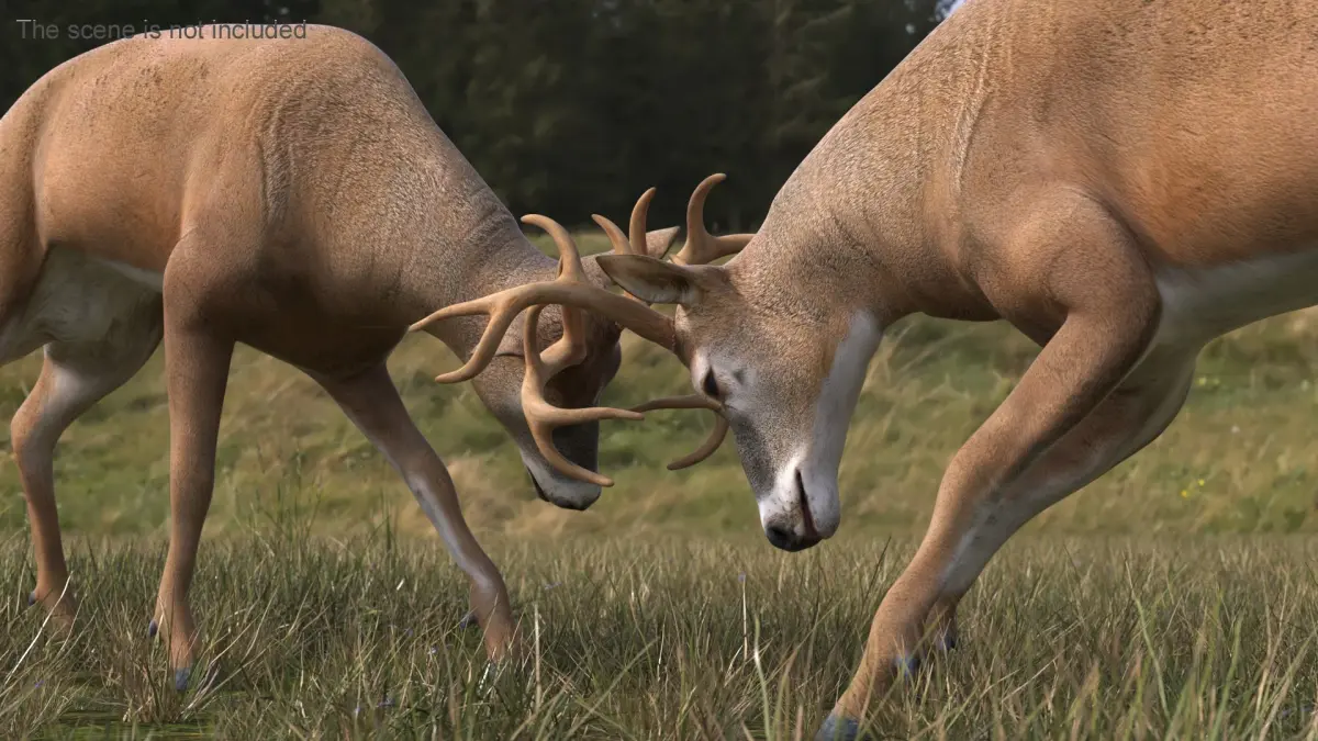 Whitetail Deer Fighting is a three-dimensional model of white-tailed deer (Odocoileus virginianus, whitetail or Virginia deer), that is a medium-sized species of deer native to North, Central and South America.