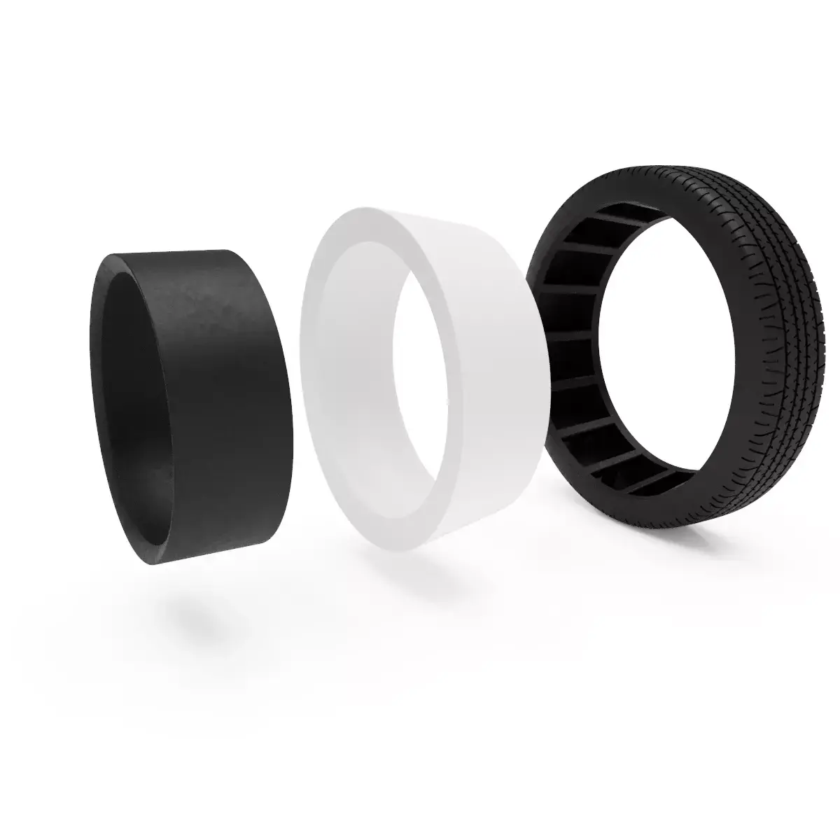 - Whitewall ring – a separate, thin insert for sharp paint definition
