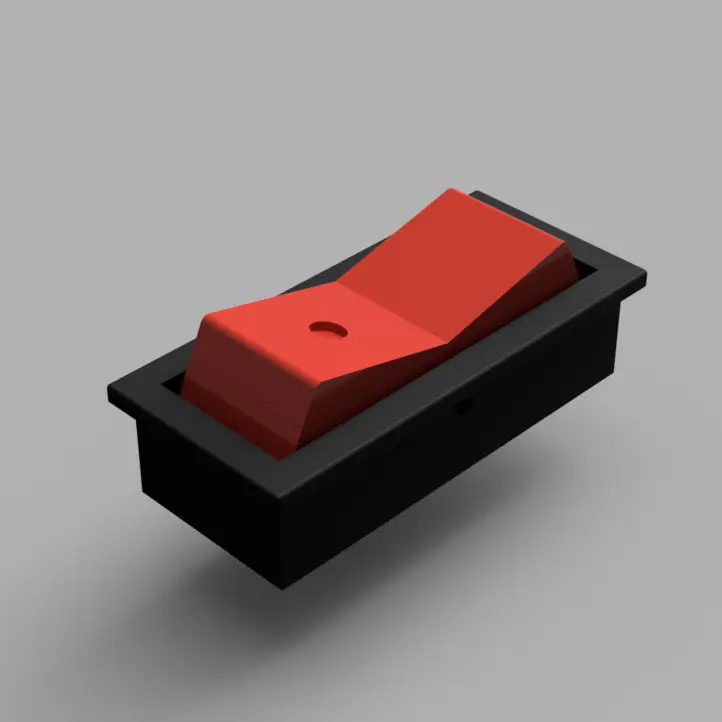 - Push a piece of 3D Filament into the holes to hold the Rocker Switch in place.