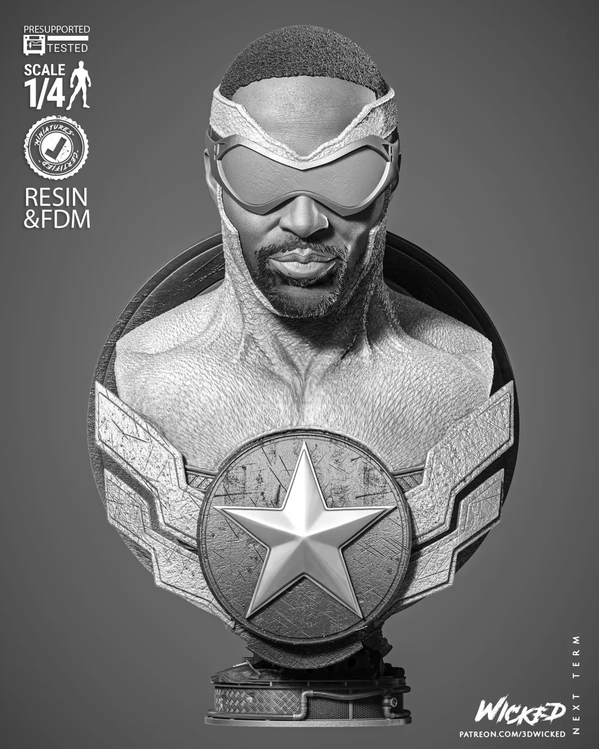 Falcon Portrait Bust is based on the Marvel Comics. Fan Art Model (1/4 scale approx) Tested and ready for 3D printing!
