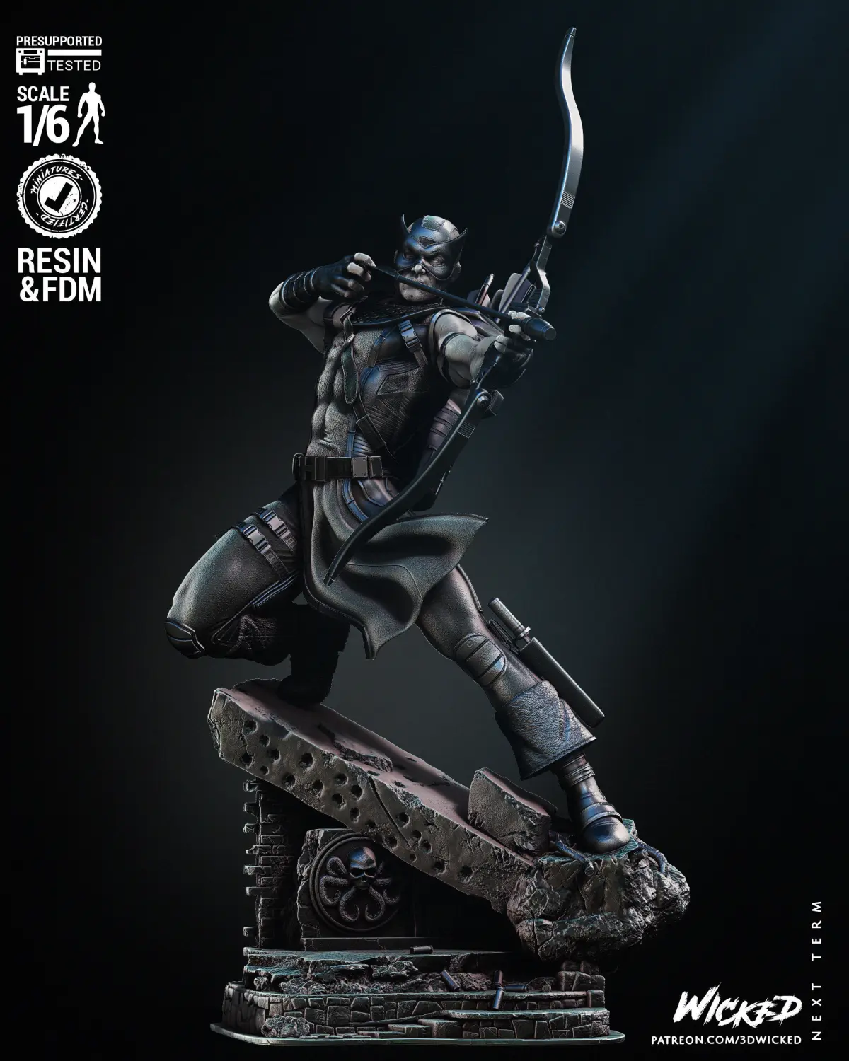 Hawkeye Sculpture. Non-Supported, Pre-Supported, and One Piece Files!