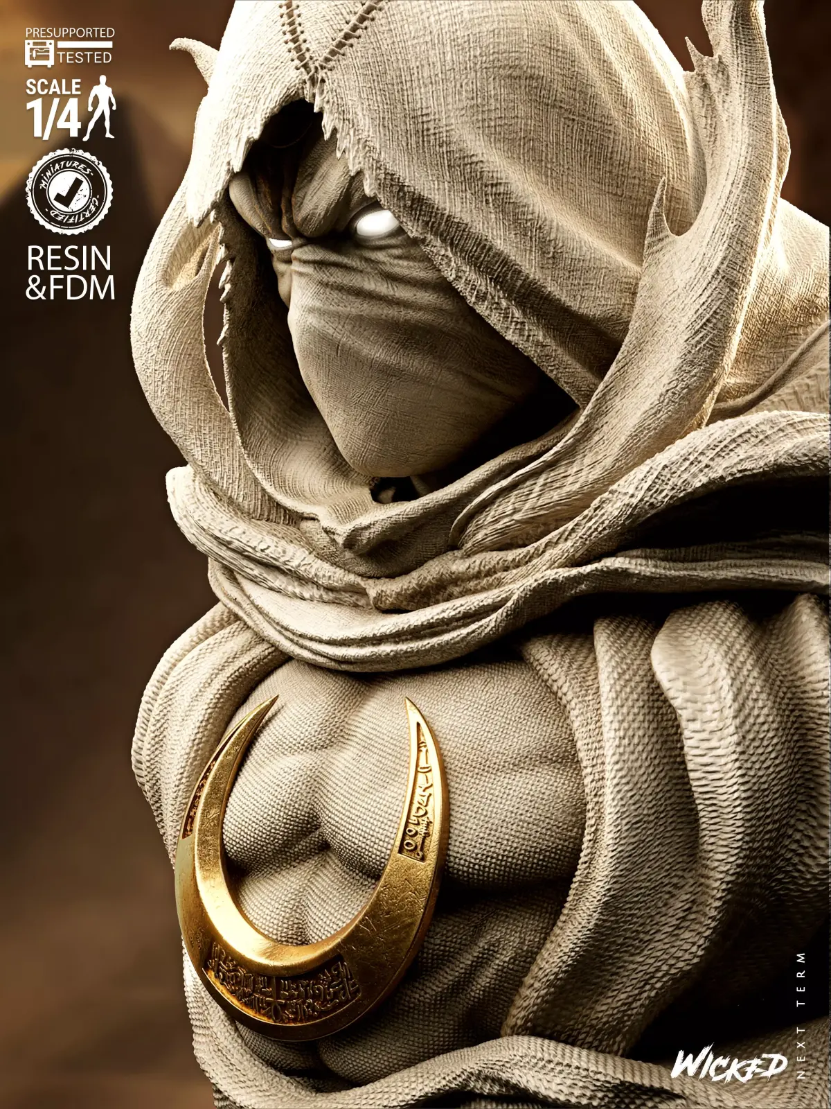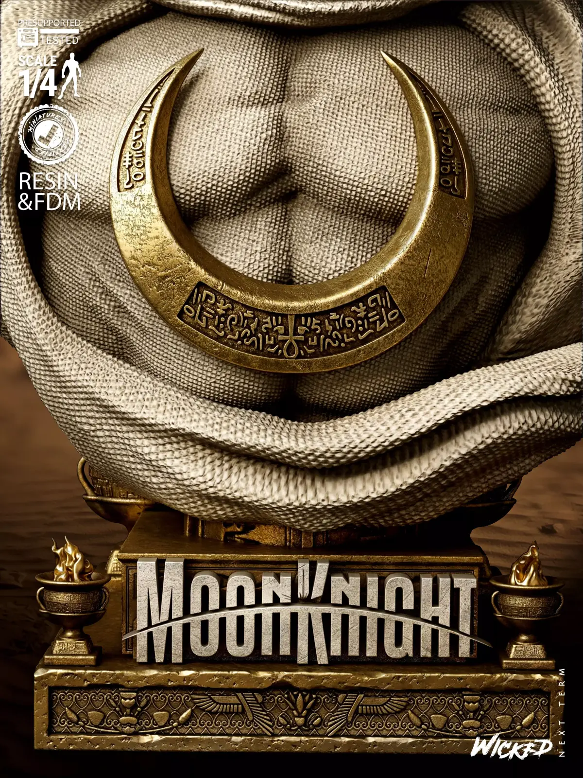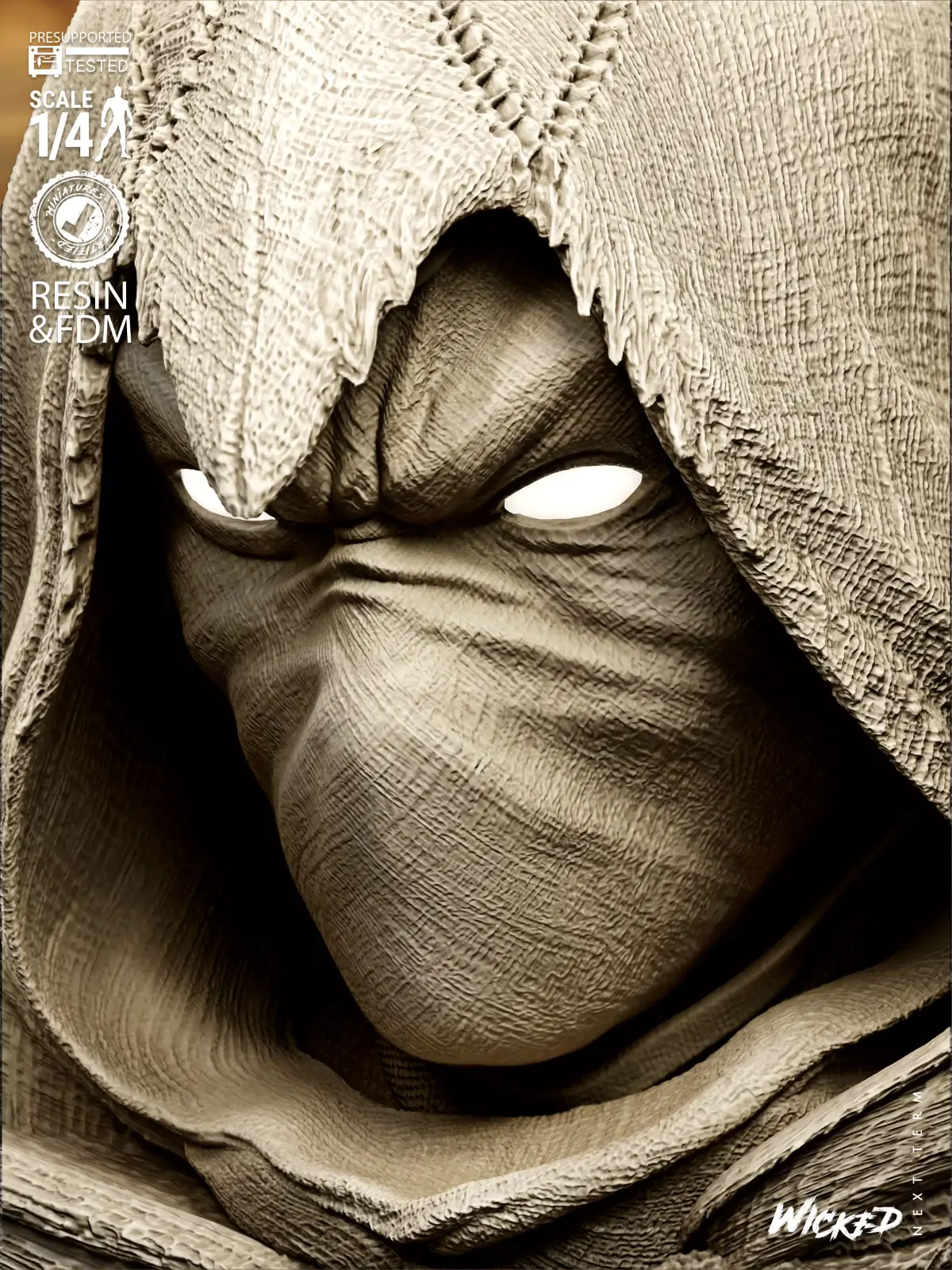 Moon Knight Portrait Bust. Fan Art Model (1/4 scale approx) Tested and ready for 3D printing!