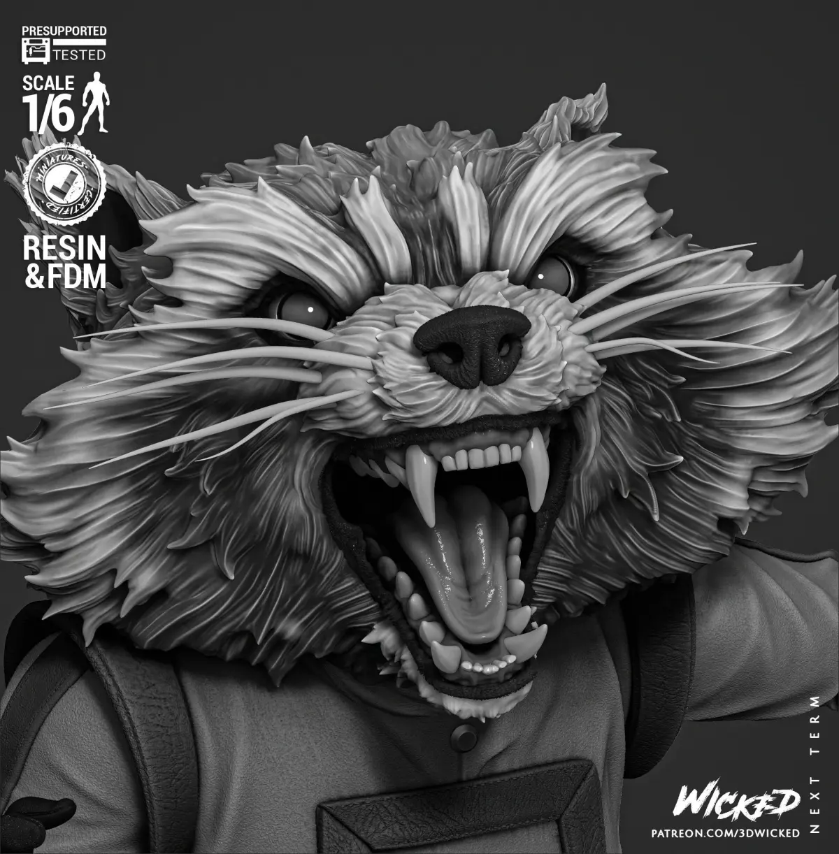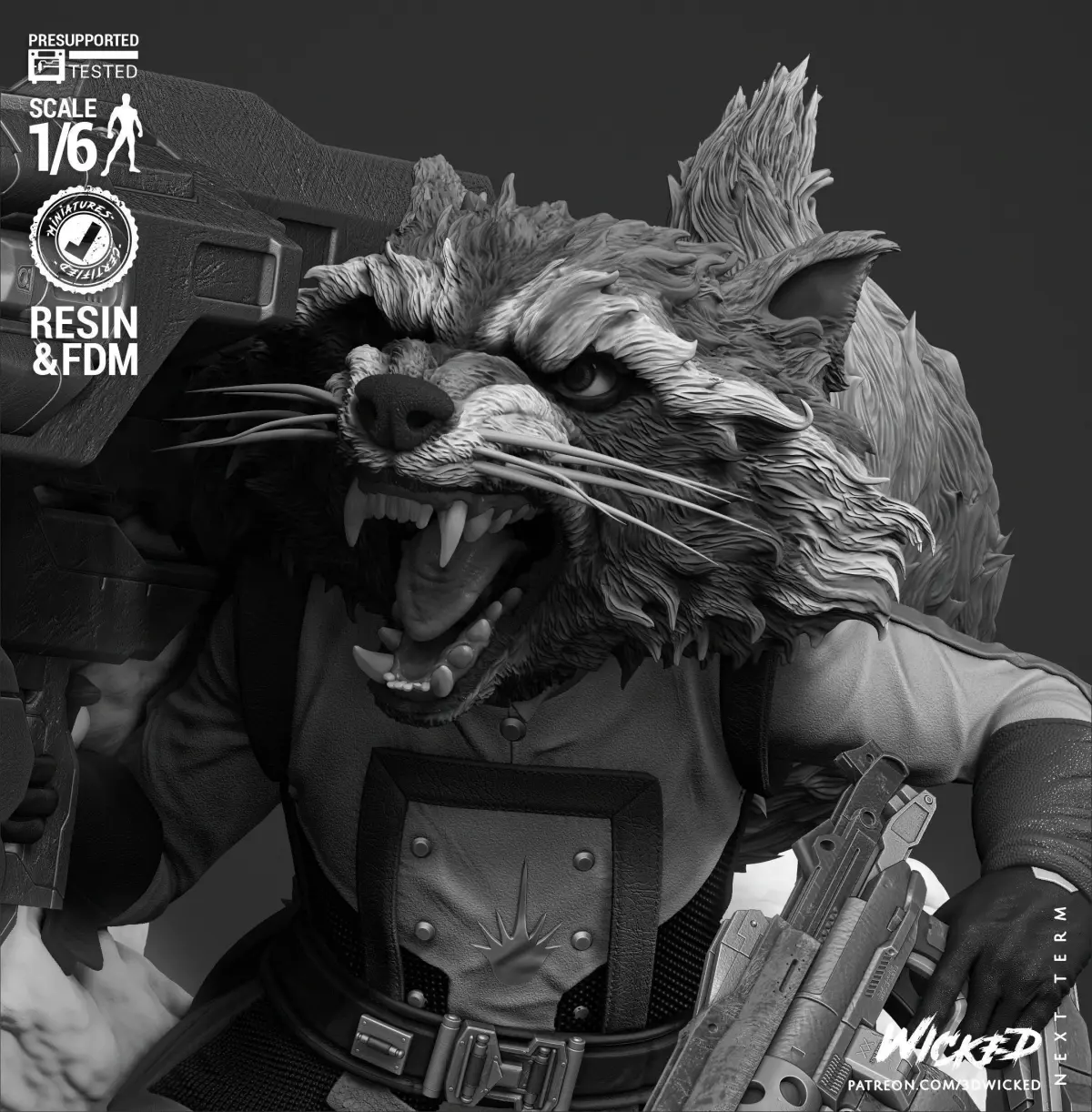 Rocket Sculpture is based on the Marvel Comics. Fan Art Model (1/6 scale approx) Tested and ready for 3D printing!