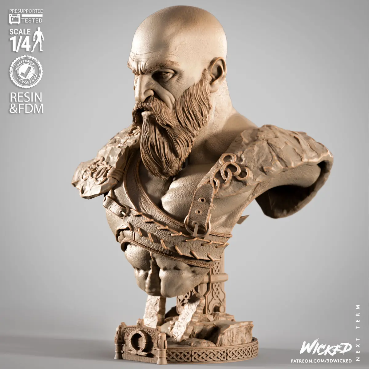 Kratos Portrait Bust. Fan Art Model (1/4 scale approx) Tested and ready for 3D printing!