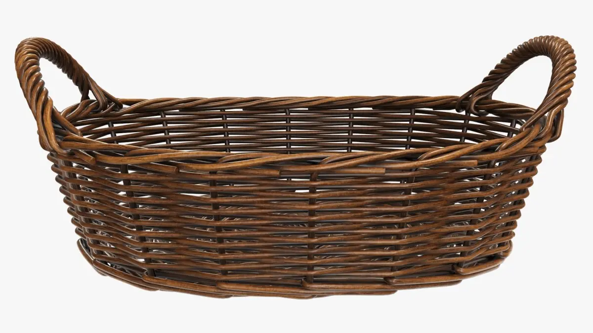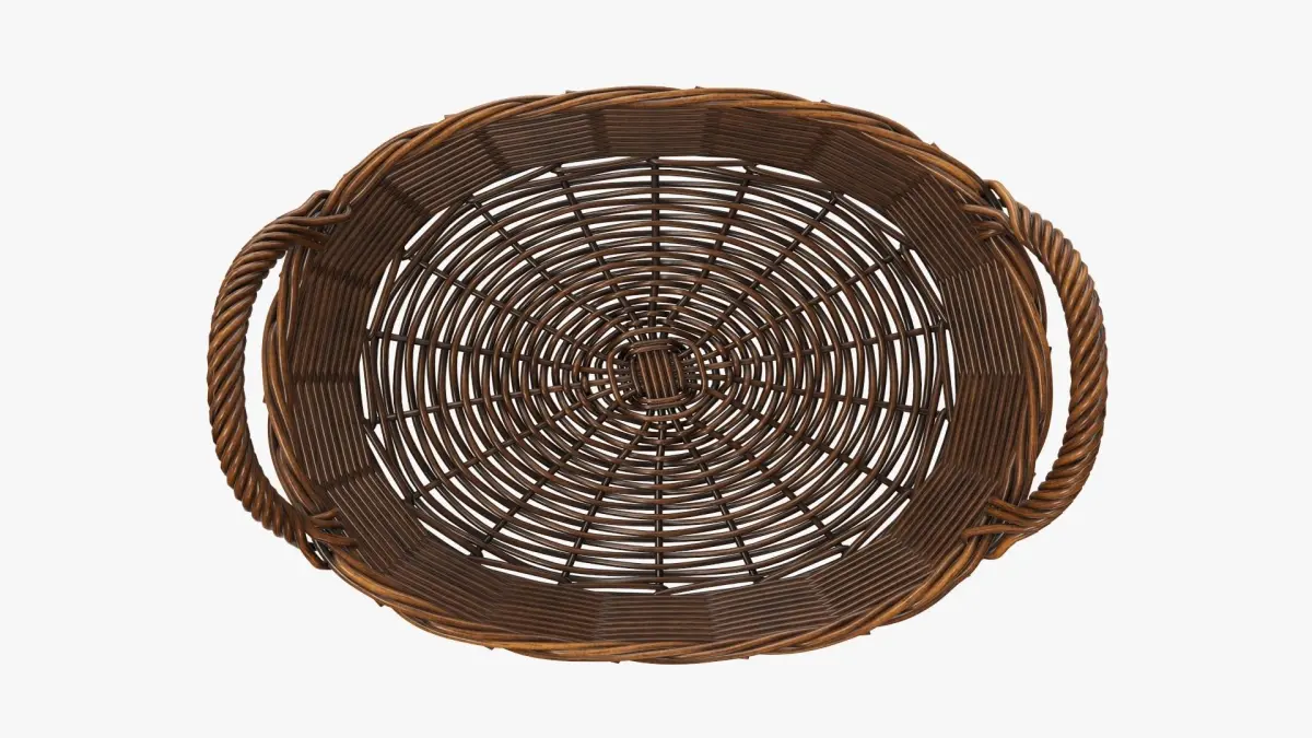Wicker basket oval with handles dark brown 3D model
