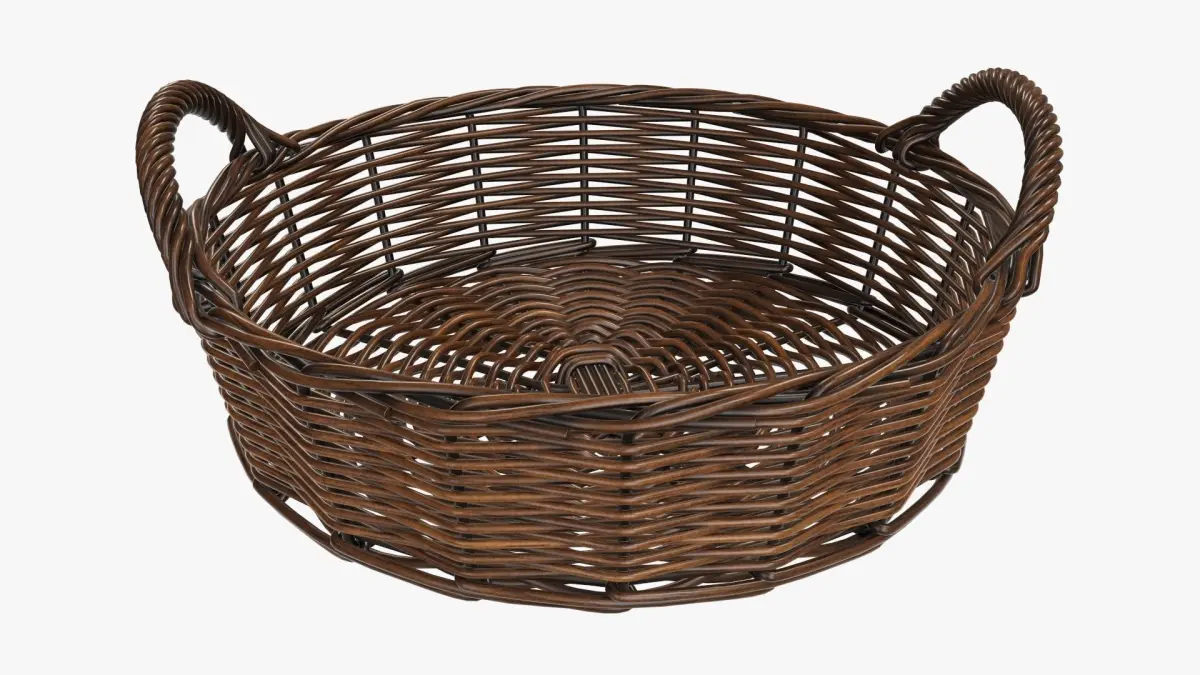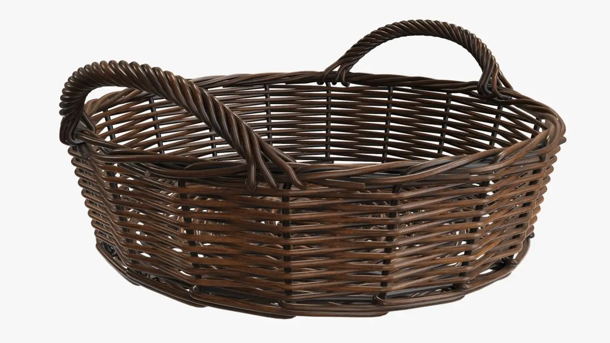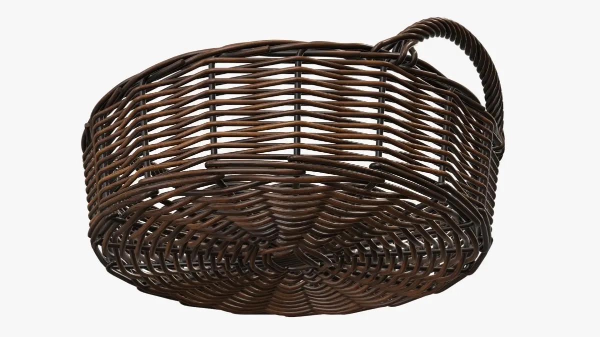 Wicker basket round with handle dark brown 3D model