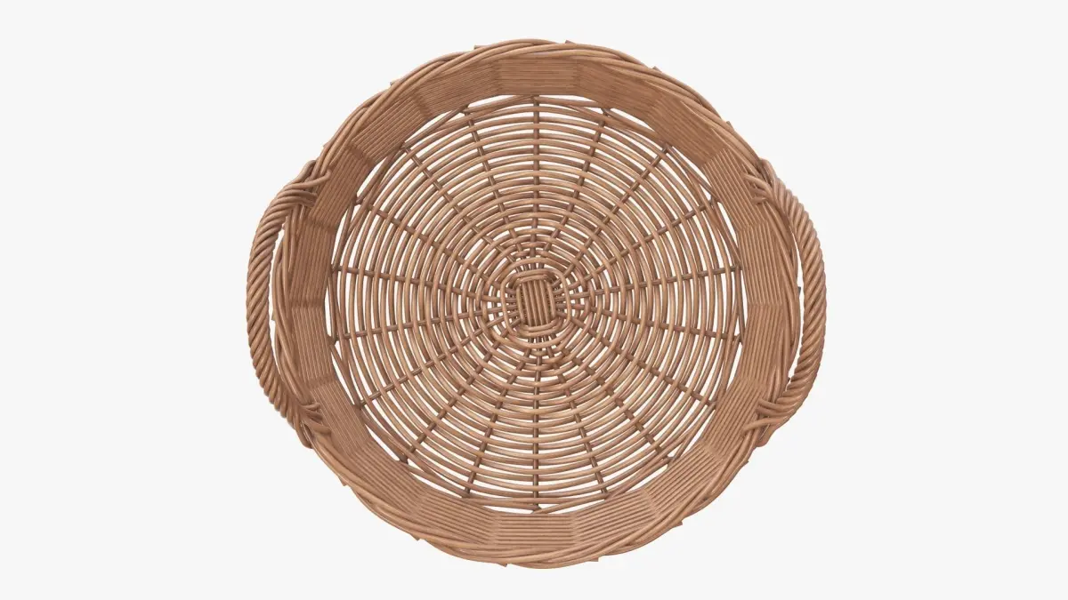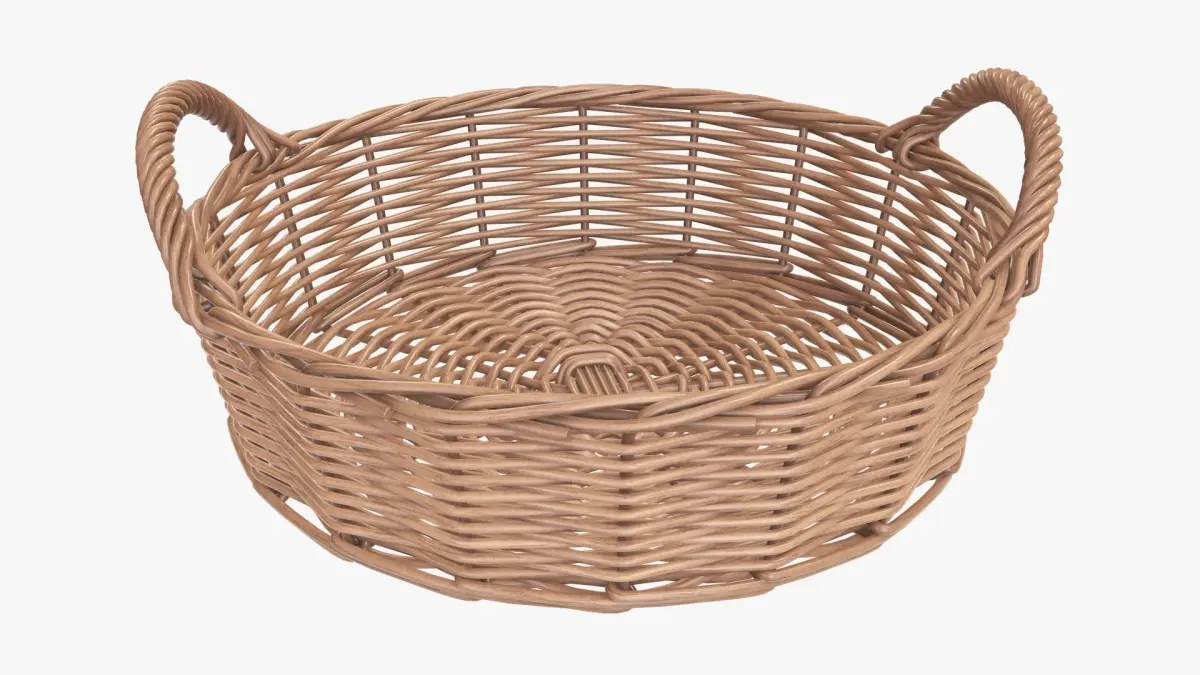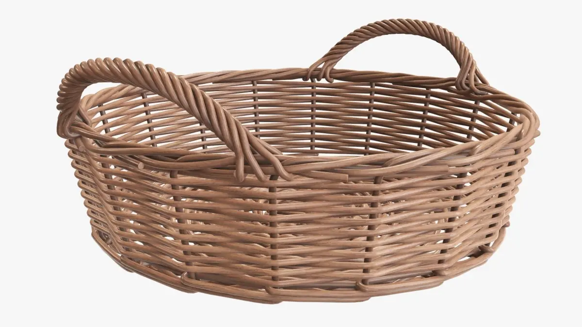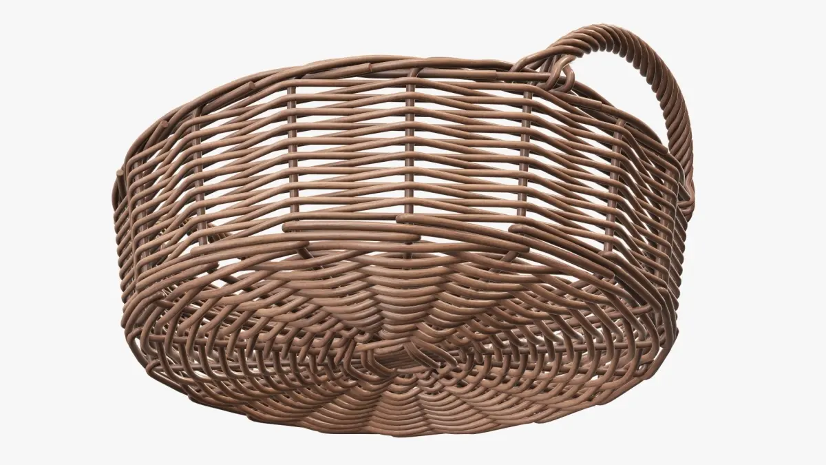 Wicker basket round with handle light brown 3D model