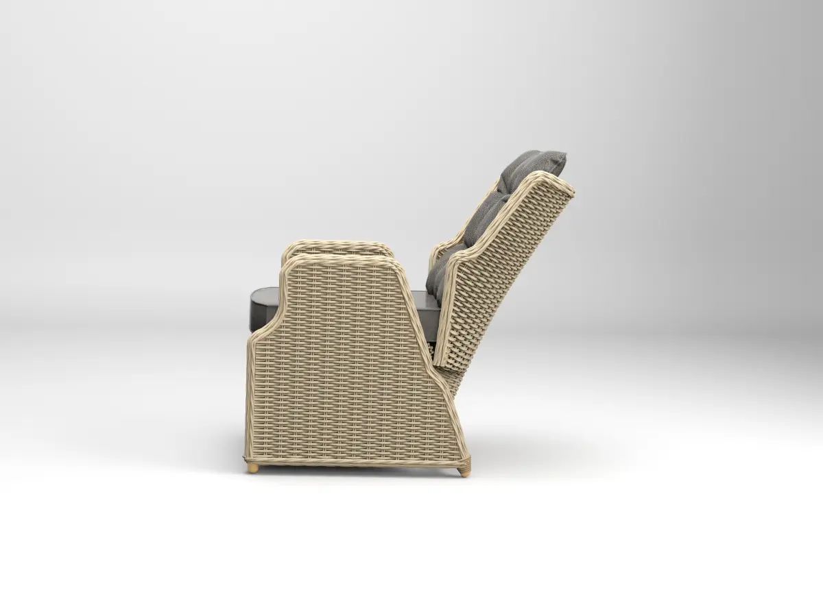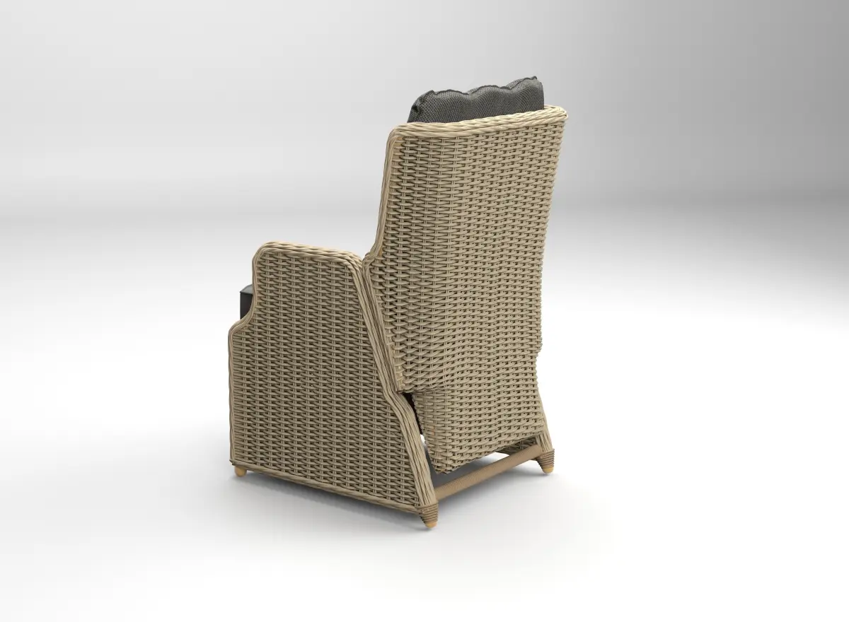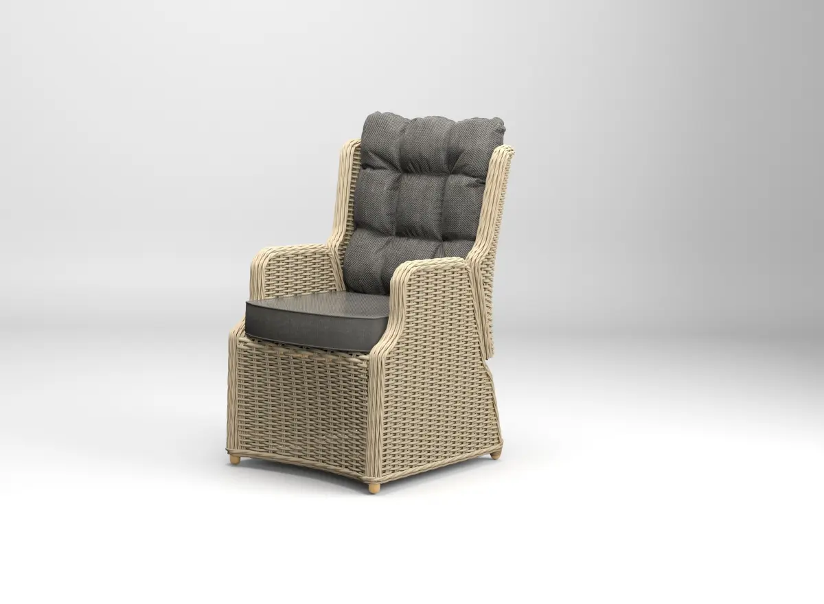 Wicker garden chair with adjustable back cushion
