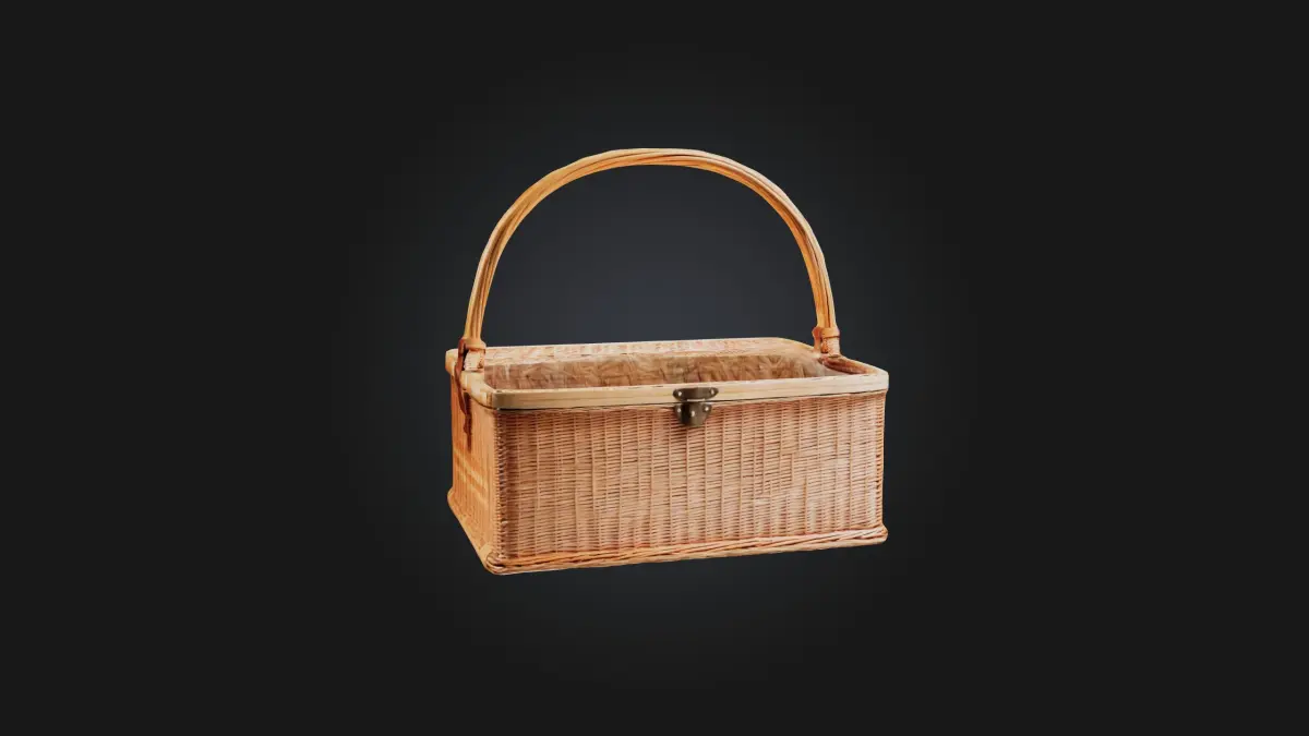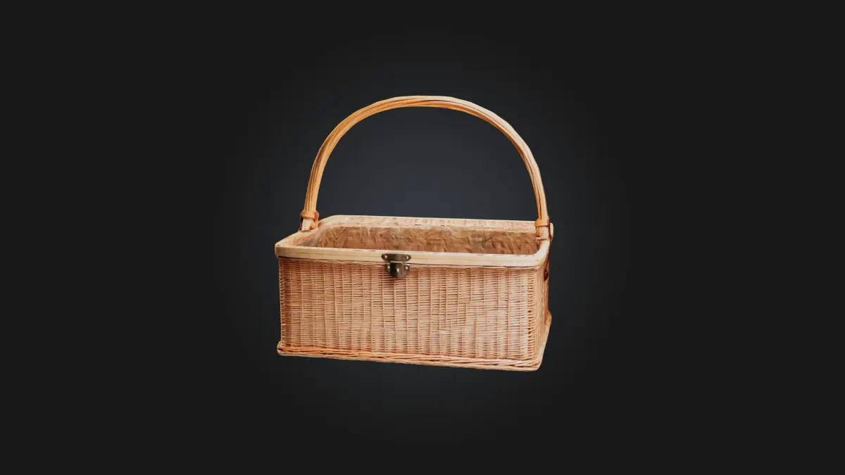 This 3D model features a detailed wicker picnic basket, showcasing its natural woven texture and sturdy handle. The model captures the charm of traditional picnic baskets, with realistic detailing on the weaving pattern, handle reinforcement, and lid design. Perfect for outdoor scenes, picnic simulations, or as part of a kitchenware or camping collection, this model brings a timeless, rustic appeal with accurate depiction of wicker material.