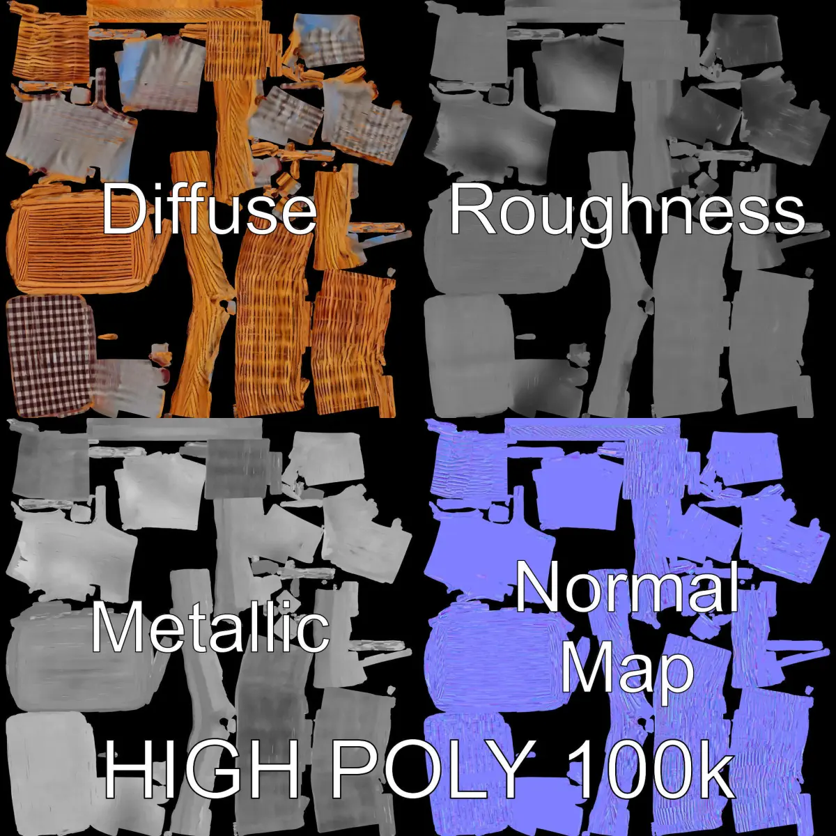The model's PBR textures, including Diffuse, NormalMap, and roughness/metallic maps, ensure realism and compatibility with any modern rendering engine. All unwrapped UVs are clean with no overlaps, providing excellent control over material applications.