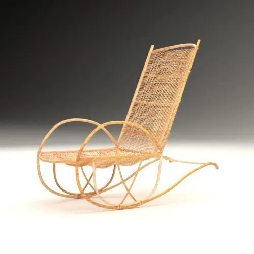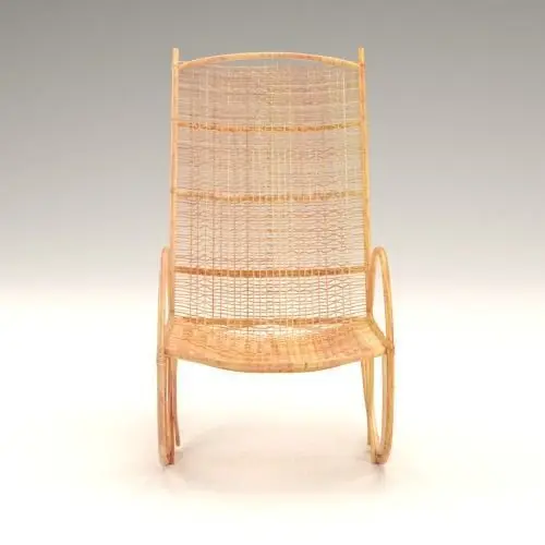 A light-weight wicker rocking chair in bright wooden hues. Ideal for outdoor and indoor scenes with calm and mellow character. Instantly adds a retro and cozy ambiance to the scene.