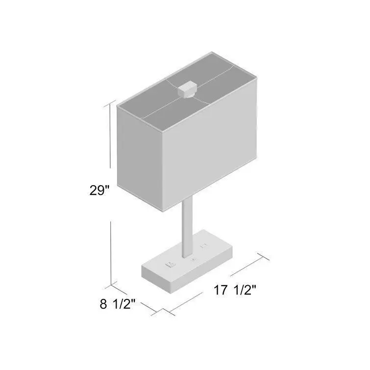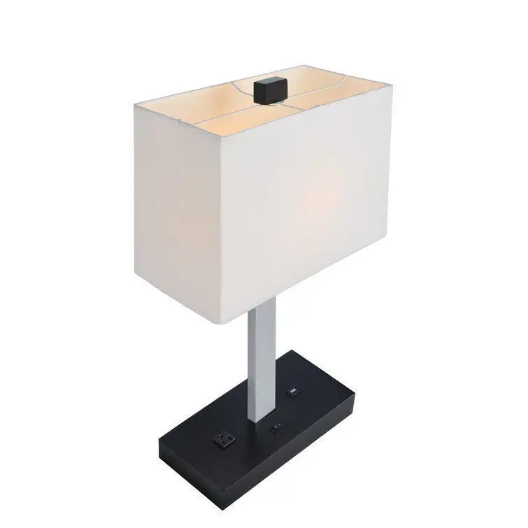 - Lightweight, portable, and mindful of space, table lamps keep your home looking on the bright side with just-right task and accent lighting. Brimming with contemporary style, this one is founded atop a rectangular base and features a slim, straight metal frame. Up top, its fabric shade helps create an ambient atmosphere and accommodates one 100 W E26 light bulb (not included). Plus, the base includes an electrical plug and a USB outlet for keeping your phone or tablet at a full charge!