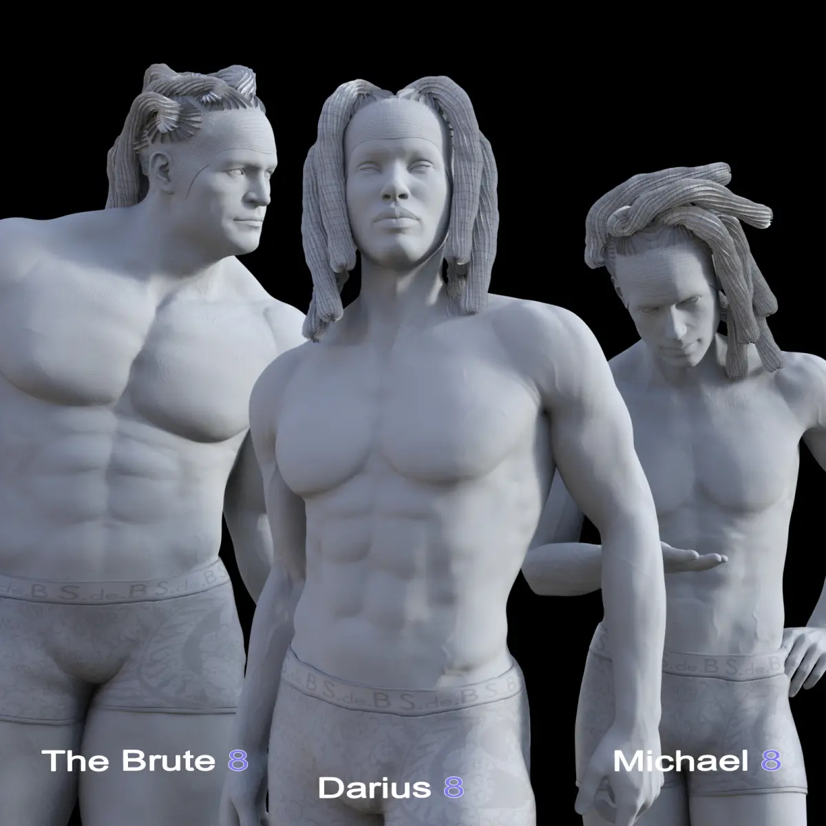 A Conforming and Rigged Hair Figure for genesis 8 Males :