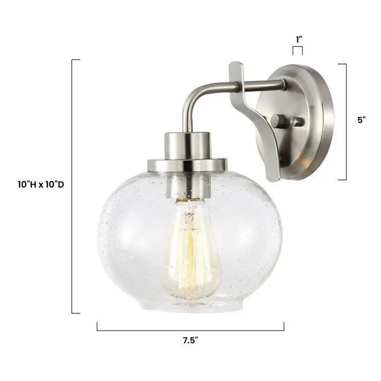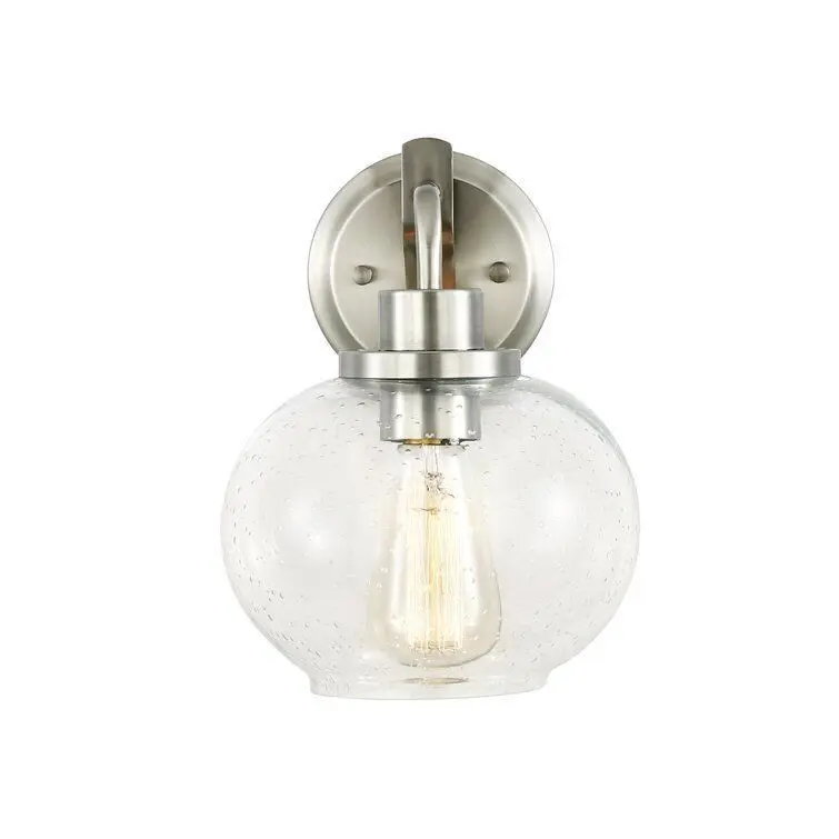 - Searching for something special to spruce up the master suite? Switch out your nightstand lamp for this sconce on the wall above! Not only does it lend a fashion-forward feel to your ensemble, but it also frees up space for displaying accents and keeping nighttime essentials on hand. Take this one for example: Crafted from iron, it showcases a circular backplate and curved arm awash in a polished finish. Inside its seeded glass shade, it accommodates one 60 W E26 lightbulb (not included).