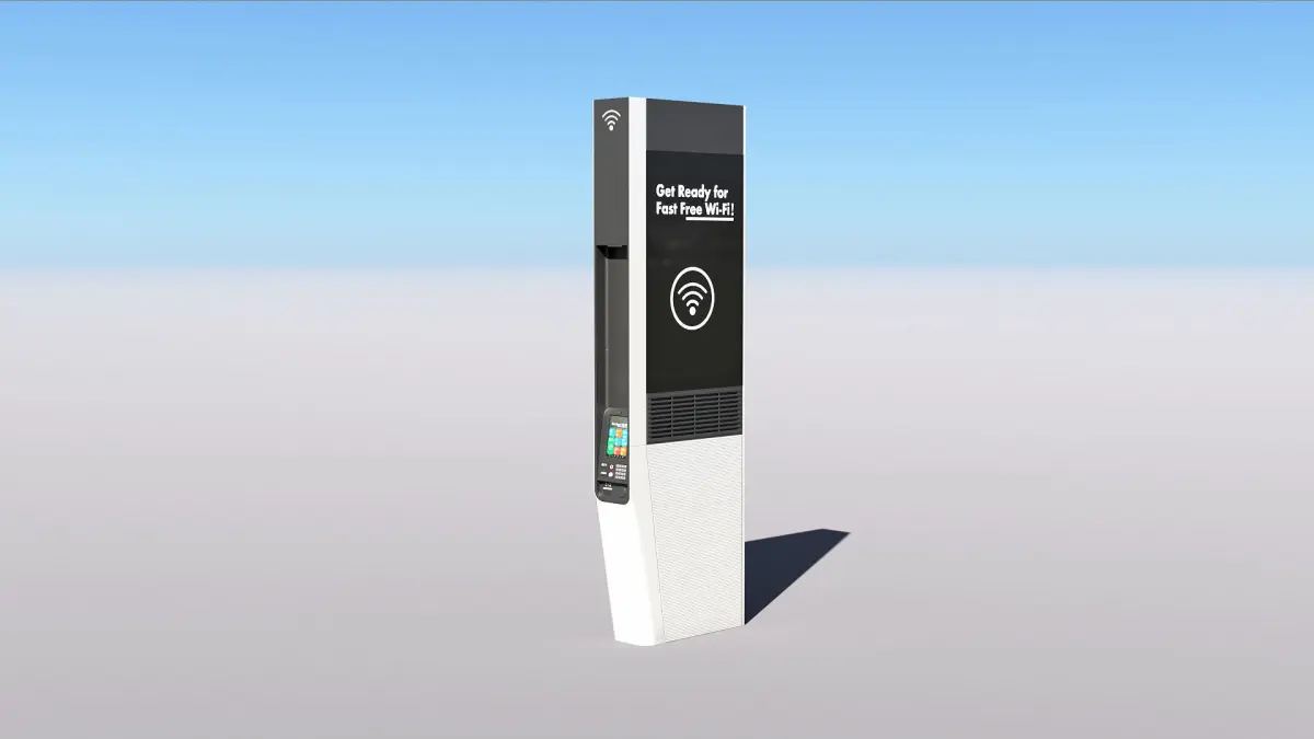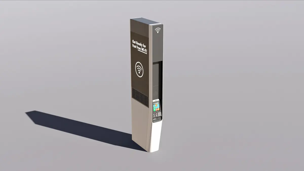 Low-poly PBR 3D model of Digital WiFi Kiosk.