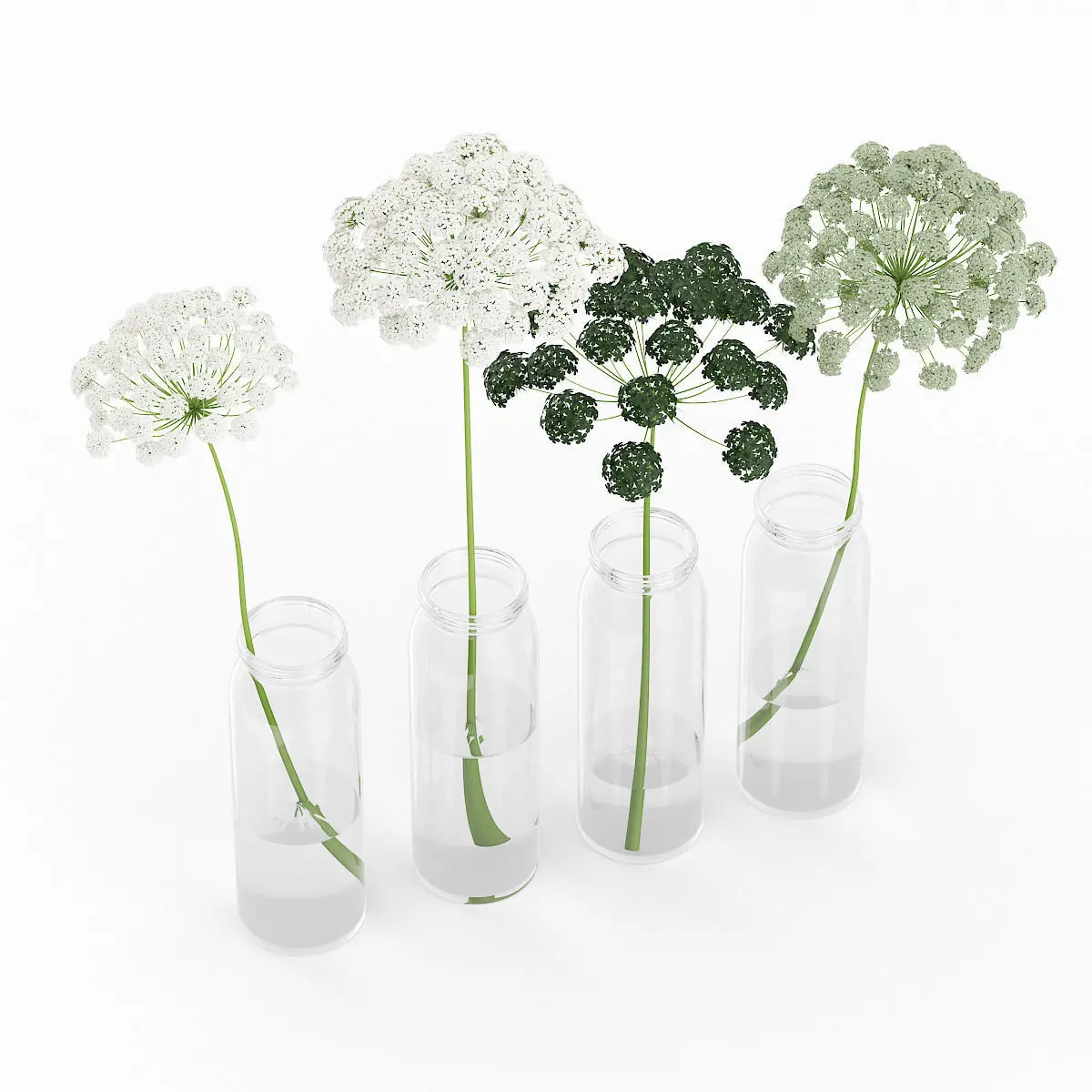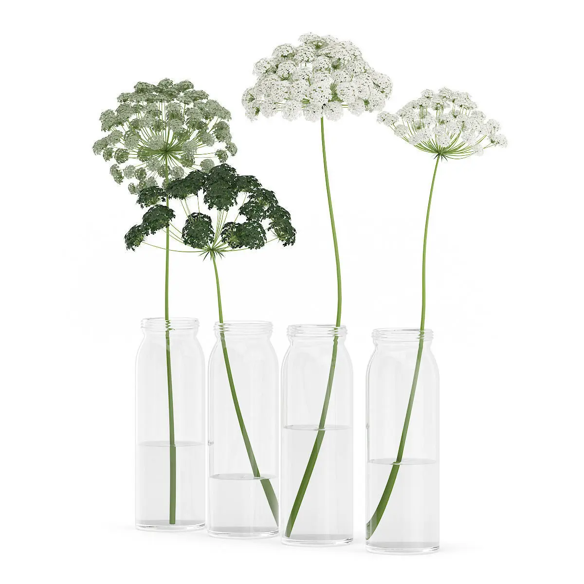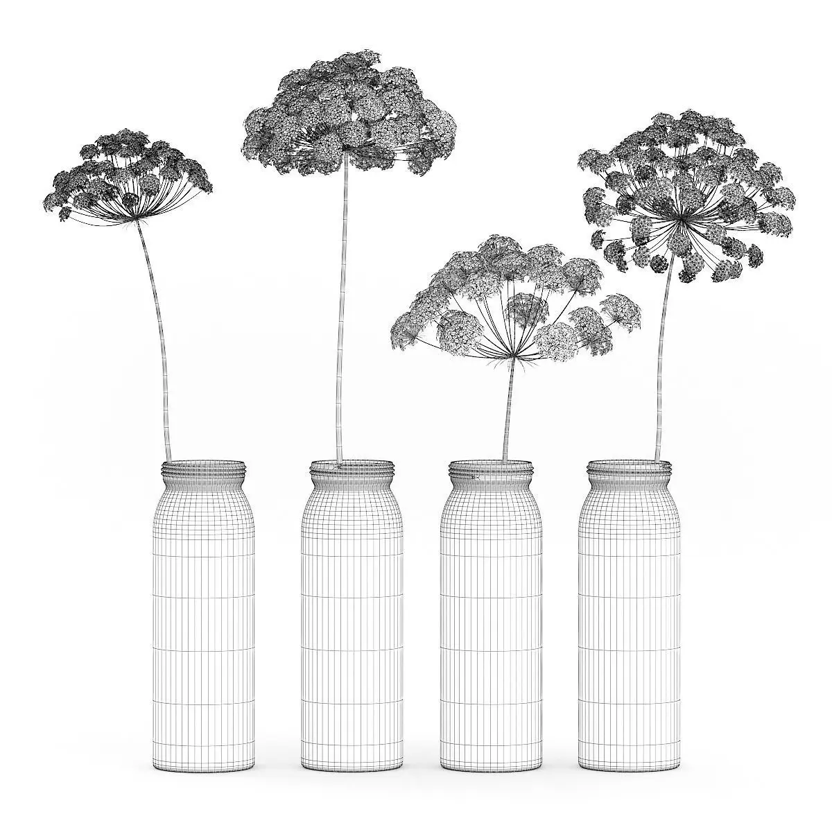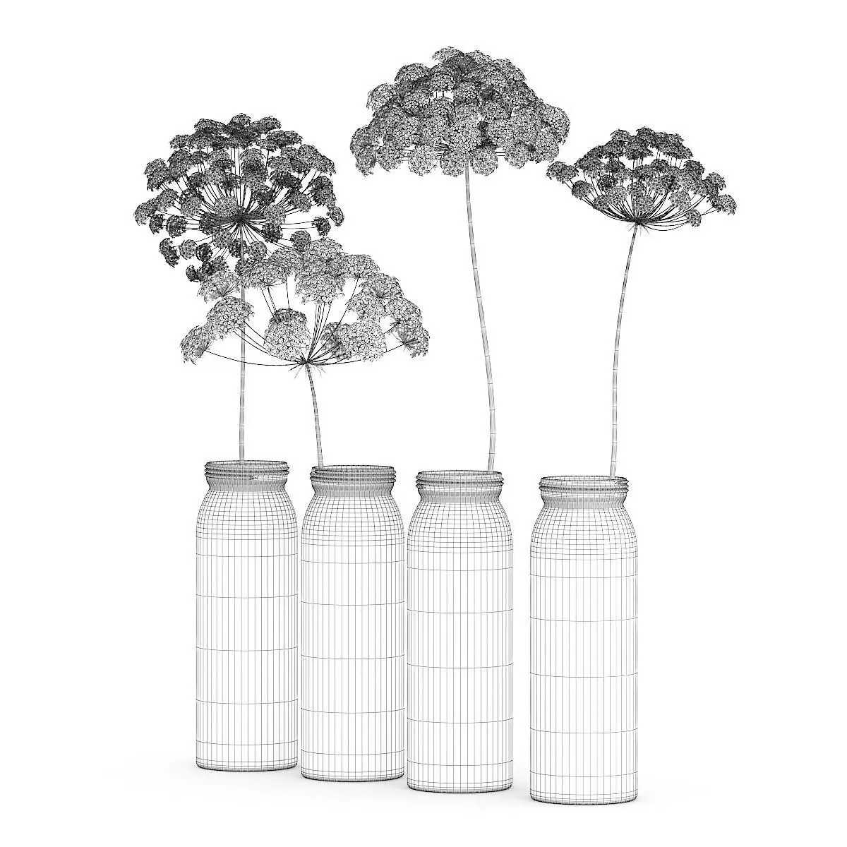 Wild Carrot Flowers in Glass Jars 3D model