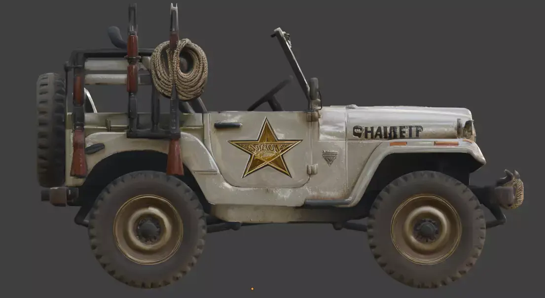 Tags:jeepsheriffpatroldesertwastelandapocalypticvehicleoff-roadriflestarleatherroperusty4x4survivalwesternutilitytransport