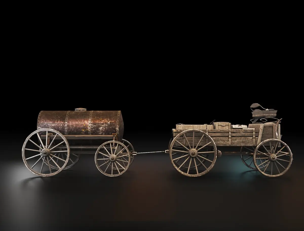 Wild Western Stagecoach and Wagon Low-poly 3D model