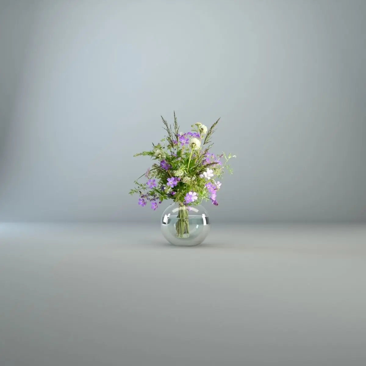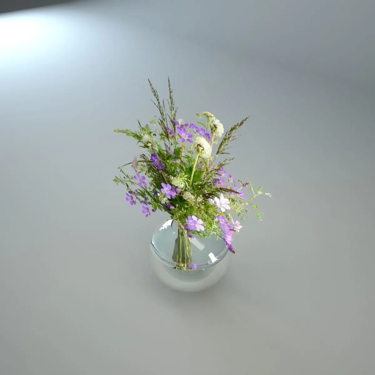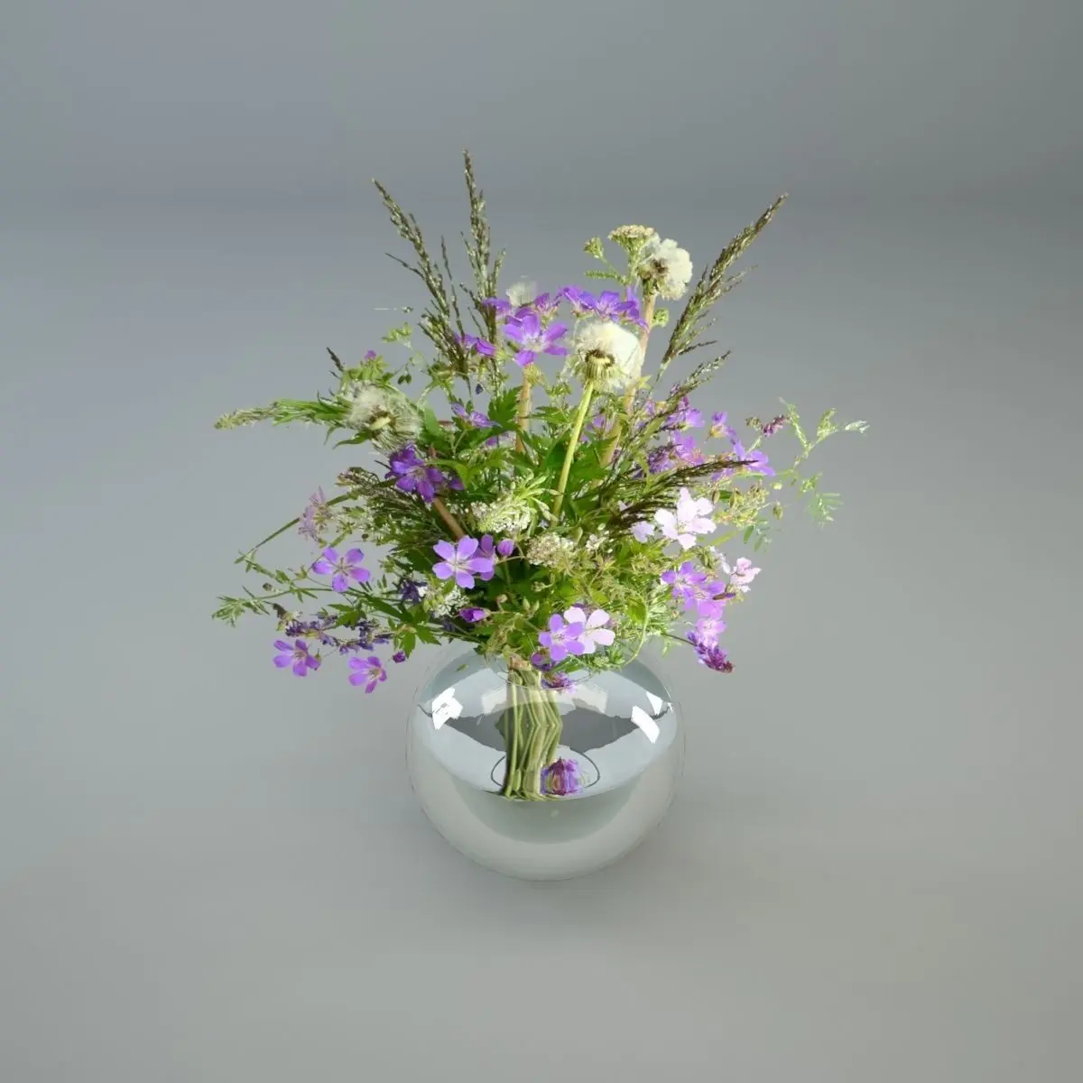 This wildflower in glass vase is combination of three dimensional vase and water, but the wildflower it self is texture on plane. For this reason the object should be always directly facing the camera.