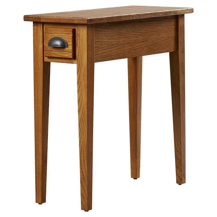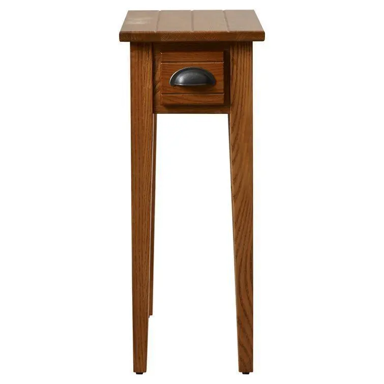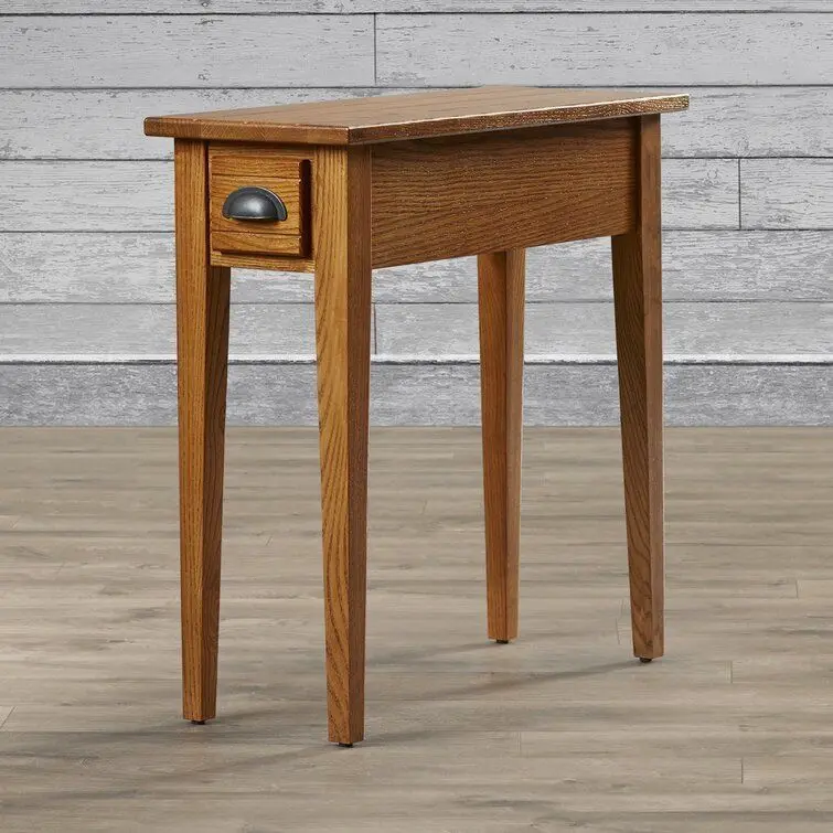 - The Wilfredo End Table with Storage is a uniquely designed table that fits conveniently into all types of spaces. This traditional-style end table has a candle glow finish, which adds charm to the table. The butch block construction of the table is not only elegant but practical too.