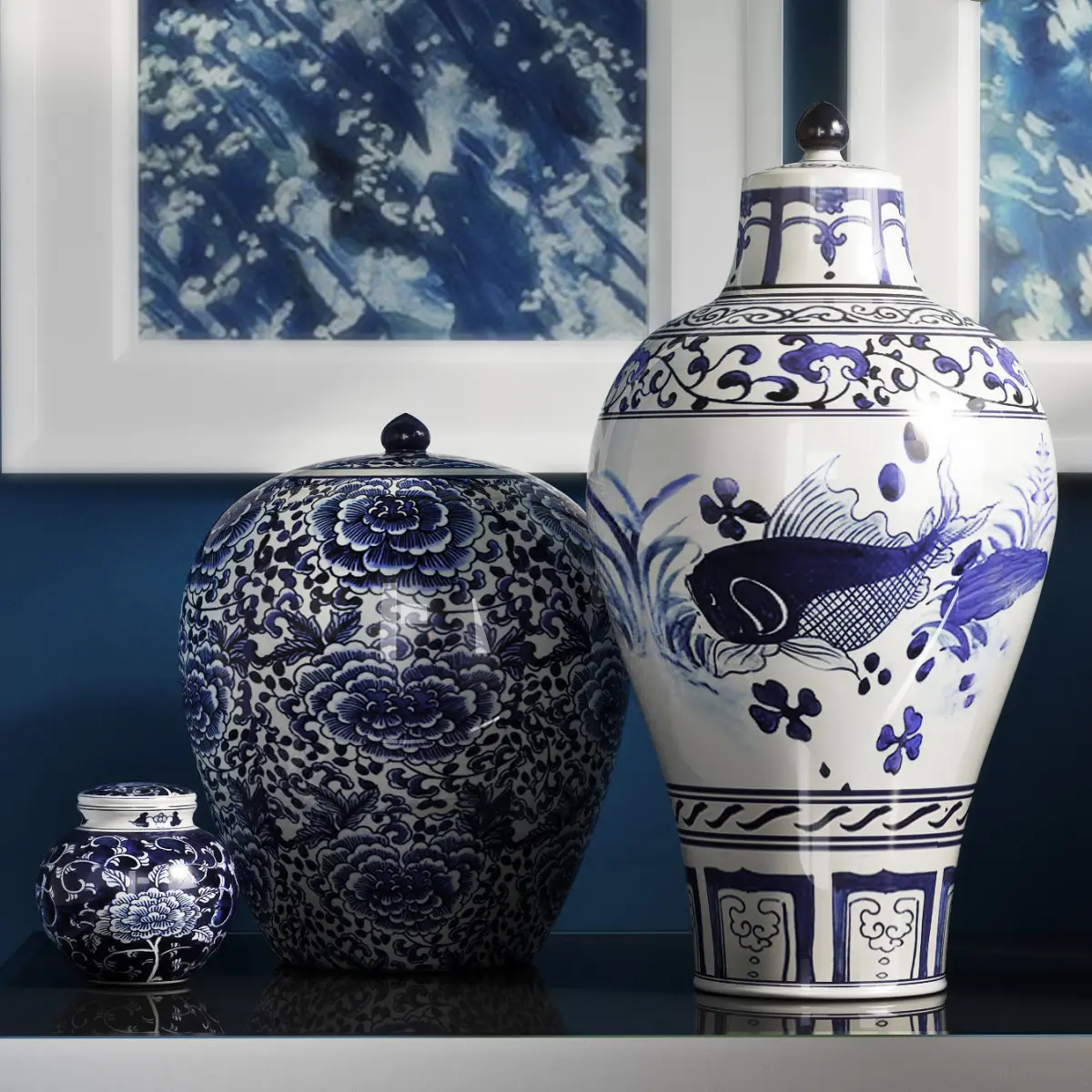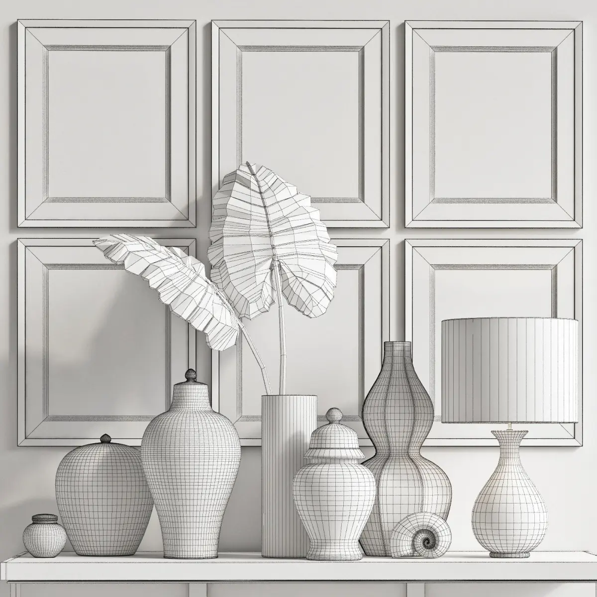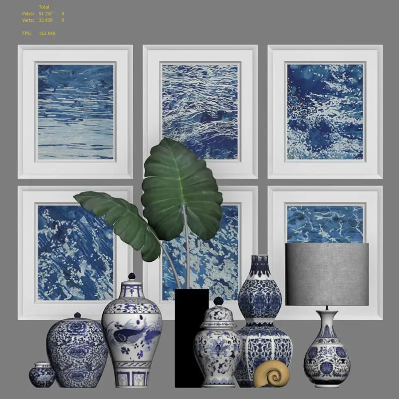 Williams-Sonoma Home Decor Set- Fish Ginger Jar- Petite Ginger Jar,Scroll Motif- Porcelain Lidded Temple Jar- Rose Motif Ginger Jar with Lid- Stacked Gourd Vase,Blue/White- Flair Ginger Jar Table Lamp,Blue and White- Stylized Brass Shell- Katie Brennan's pictures Crashing Waves- glass jar with alocasie max 2010(vray 2.40),fbx