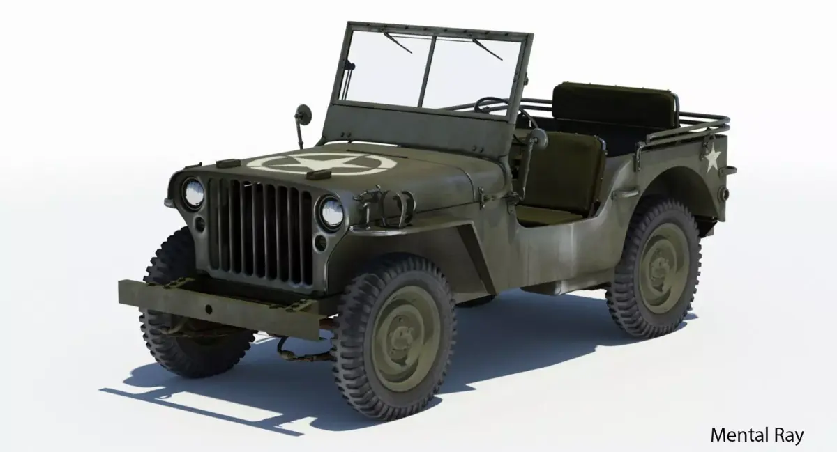 'Willys MB Jeep' is a high quality 3D model to add more details and realism to your rendering projects. Fully detailed, textured model. Detailed enough for close-up renders. Comes with detailed textures. Final images rendered with Iray.