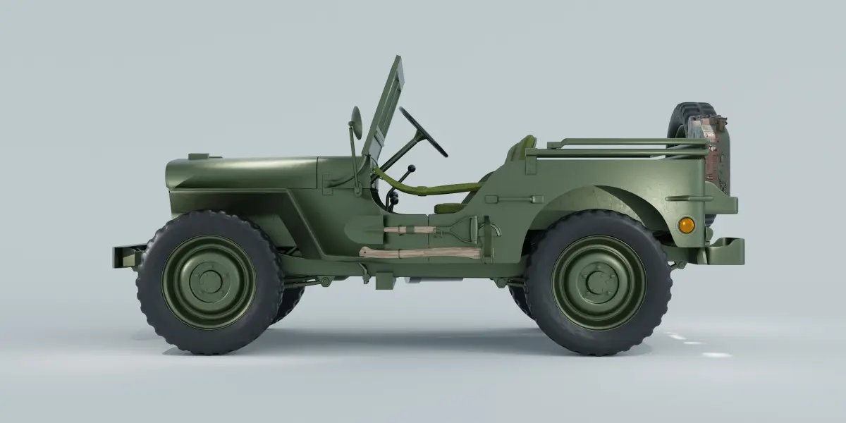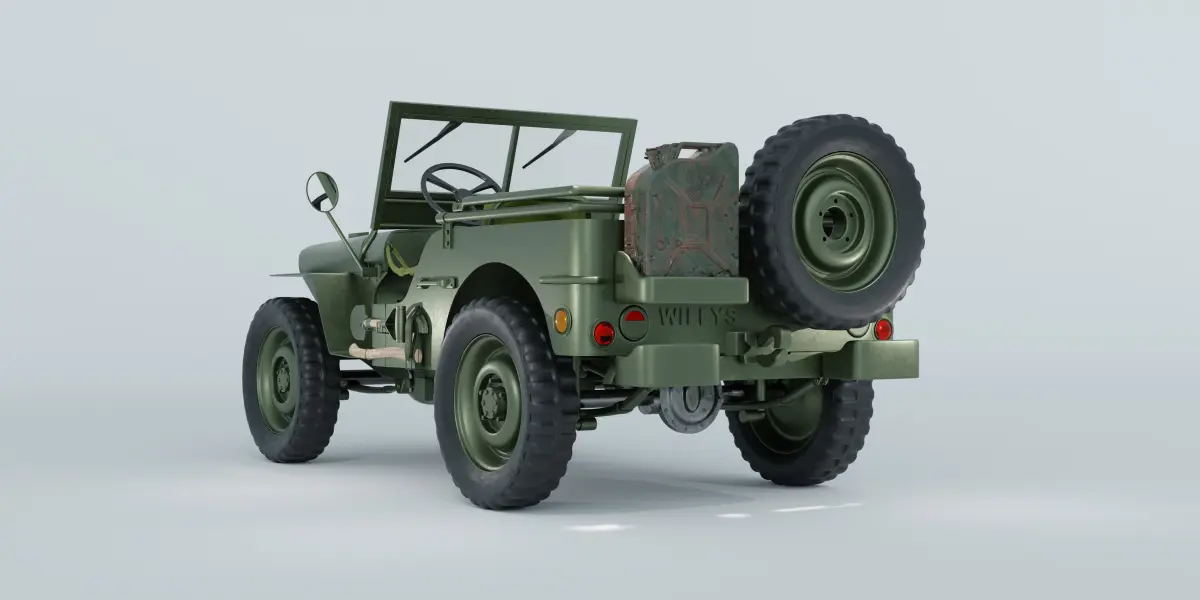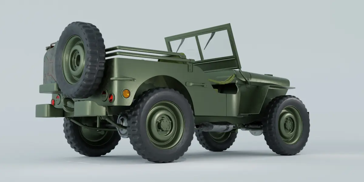Highly detailed 3D model of the iconic Willys MB WWII military jeep. This model is completely built in Blender with full attention to accuracy and realism. Includes fully modeled interior, chassis, engine, and suspension system, as well as a basic rig for wheel rotation and steering — perfect for animation or posing.