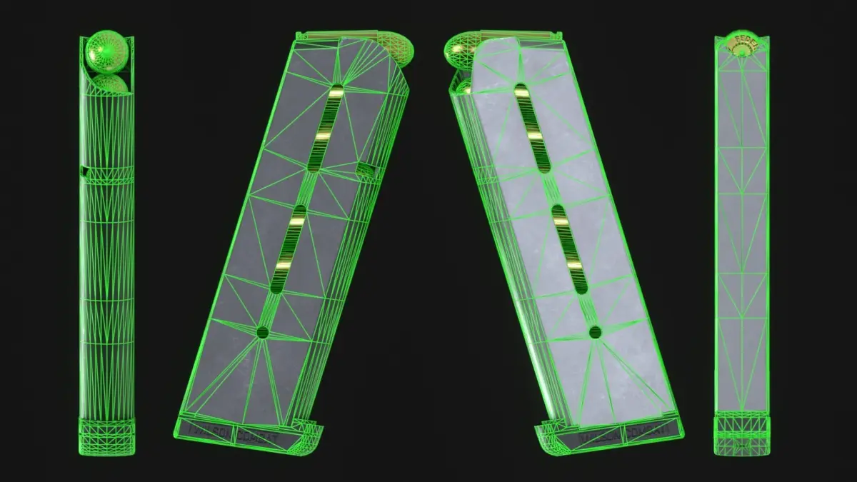 Wilson Combat 1911 Handgun Magazine with 8 round capacity. Also comes with .45ACP bullets. For people who only wanted the magazine model.The models are low poly, with baked in high poly details. Perfect for use in FPS games and projects.This model isn't made for 3D printing, it was made for use in games.