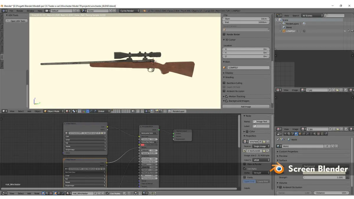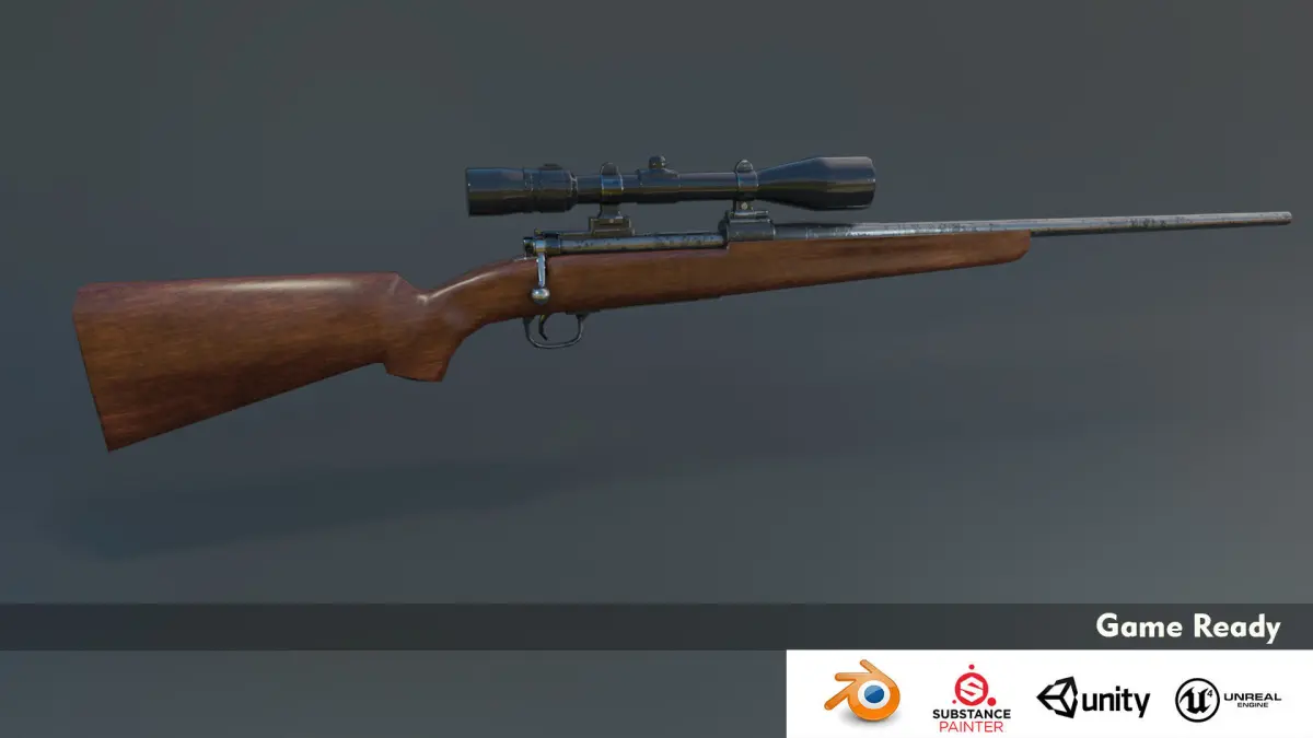 3D Low Poly VR AR Model inspired by the gun Winchester Model 70.