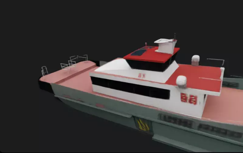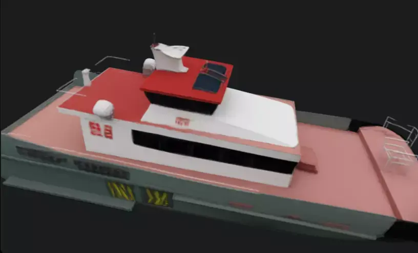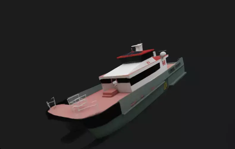 High-quality wind farm support vessel 3D model designed for offshore energy, maritime simulations, and cinematic projects.
