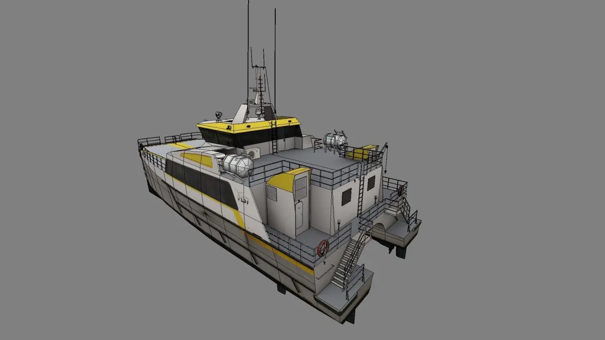 - The model was made bases on the information of the HST Hudson vessel. It's the Damen FCS 2710