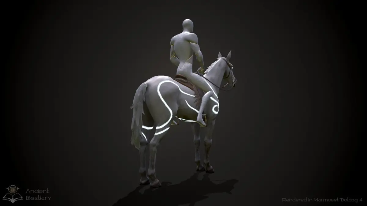 - 4K texture sets for the rider, horse's body, horse's equipment (Metal-Roughness Pipeline)