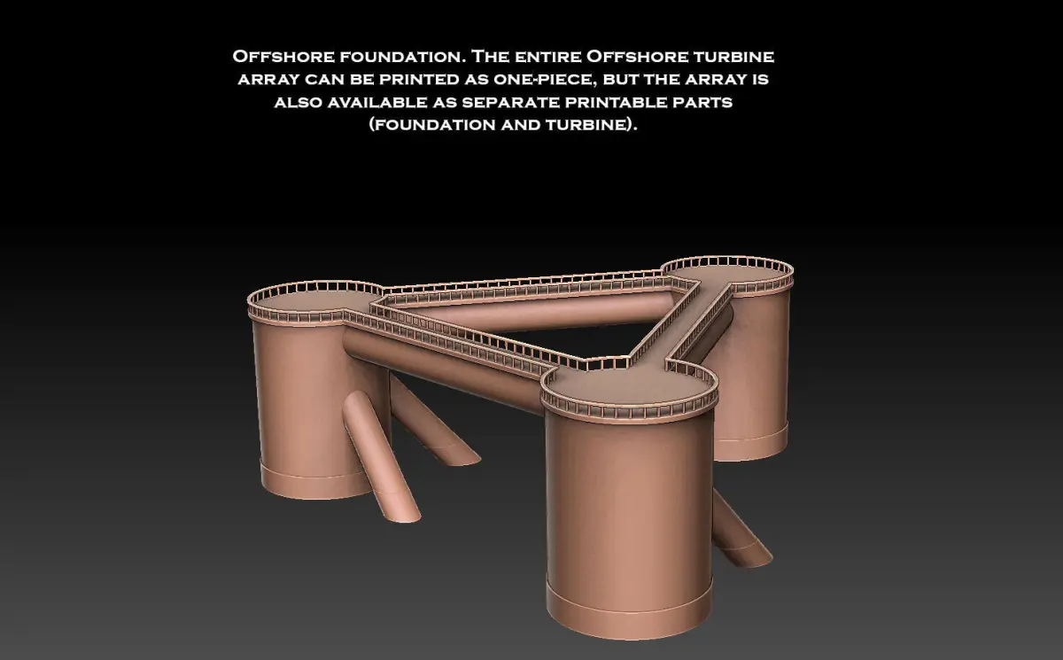 This model pack includes a land-based wind turbine, and an offshore wind turbine. The turbines prints as one-piece .stls, and thus require minimal assembly. The model pack also comes with certain components of the turbines available as separate, printable .stls. There is also a version of the land-based turbine adapted for use with a grid-based city tileset previously released by Sharedog Miniatures. See link below.