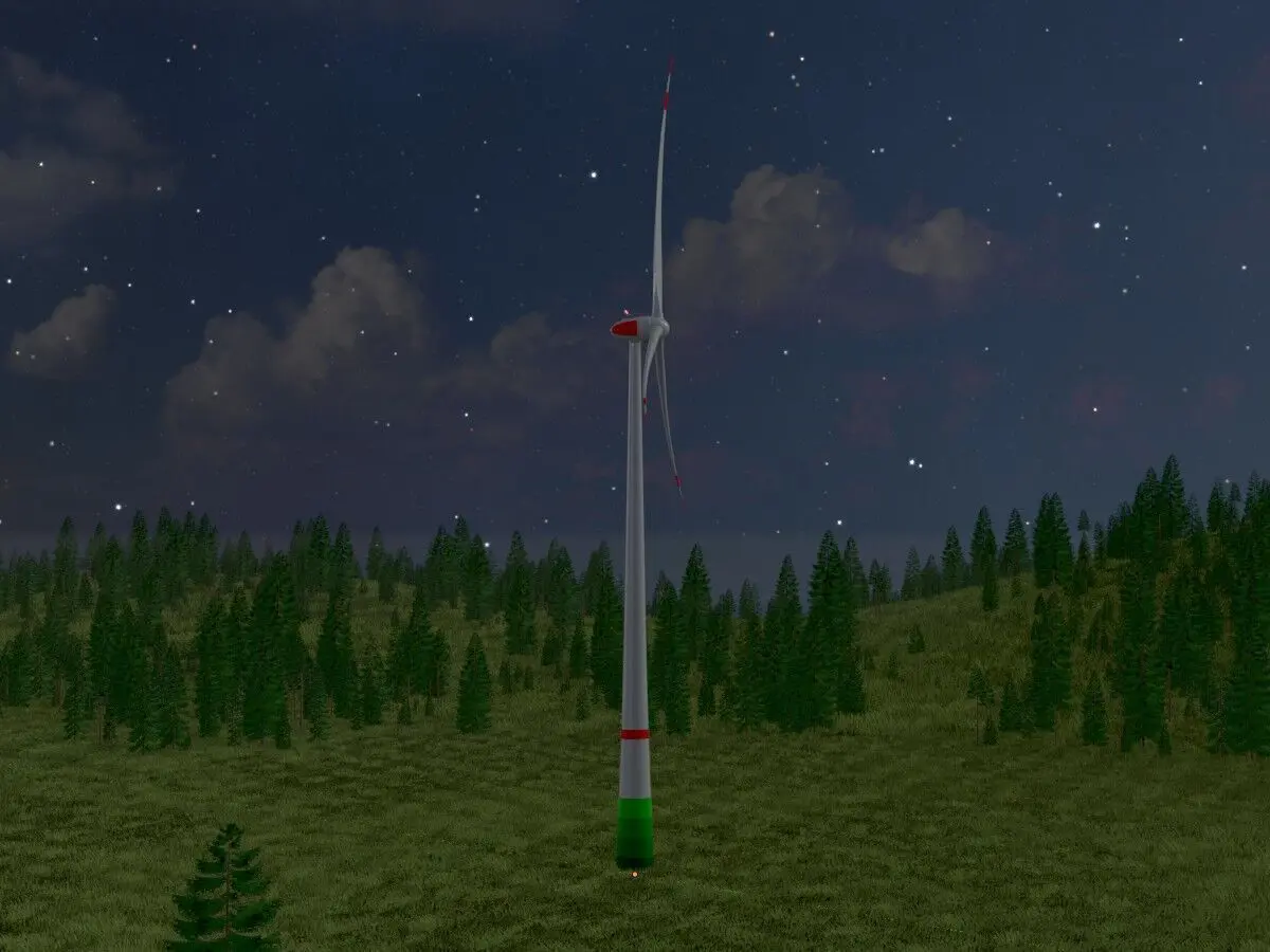 - Hier sehen Sie ein 3D-Modell der Windkraftanlage Version E82 ohne Fundament mit einem Rotordurchmesser von 162 Metern.