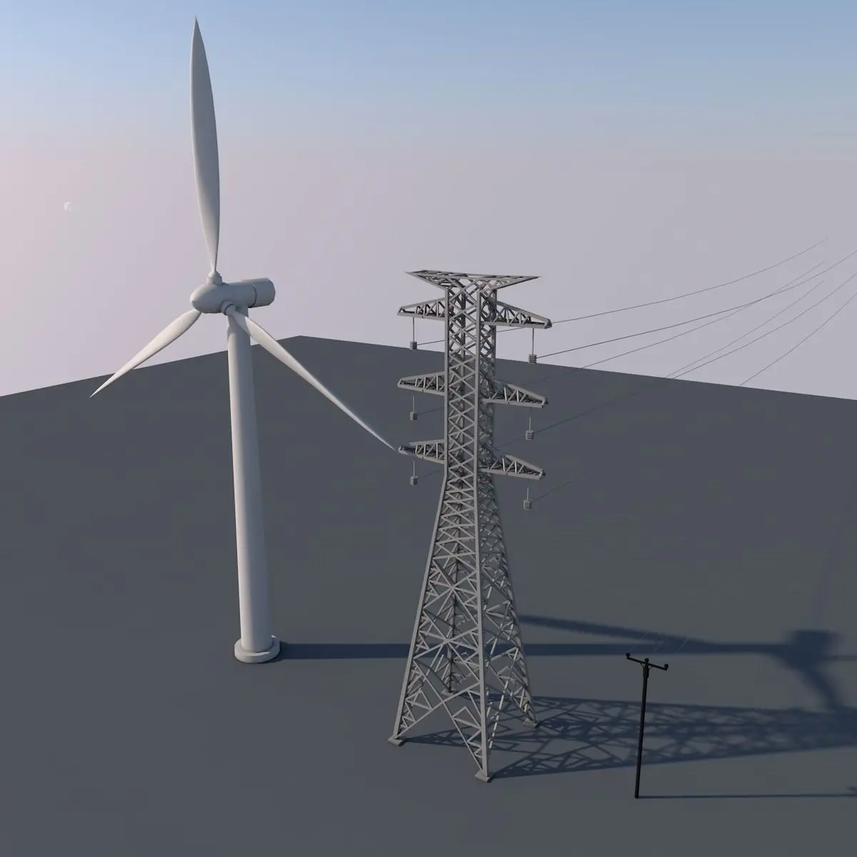 Both wind Turbine and the power lines have 2 different polygons (tower and wire)(Pole and blade)