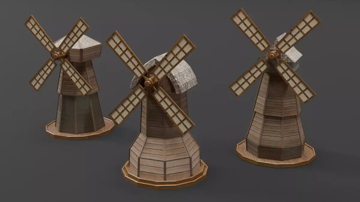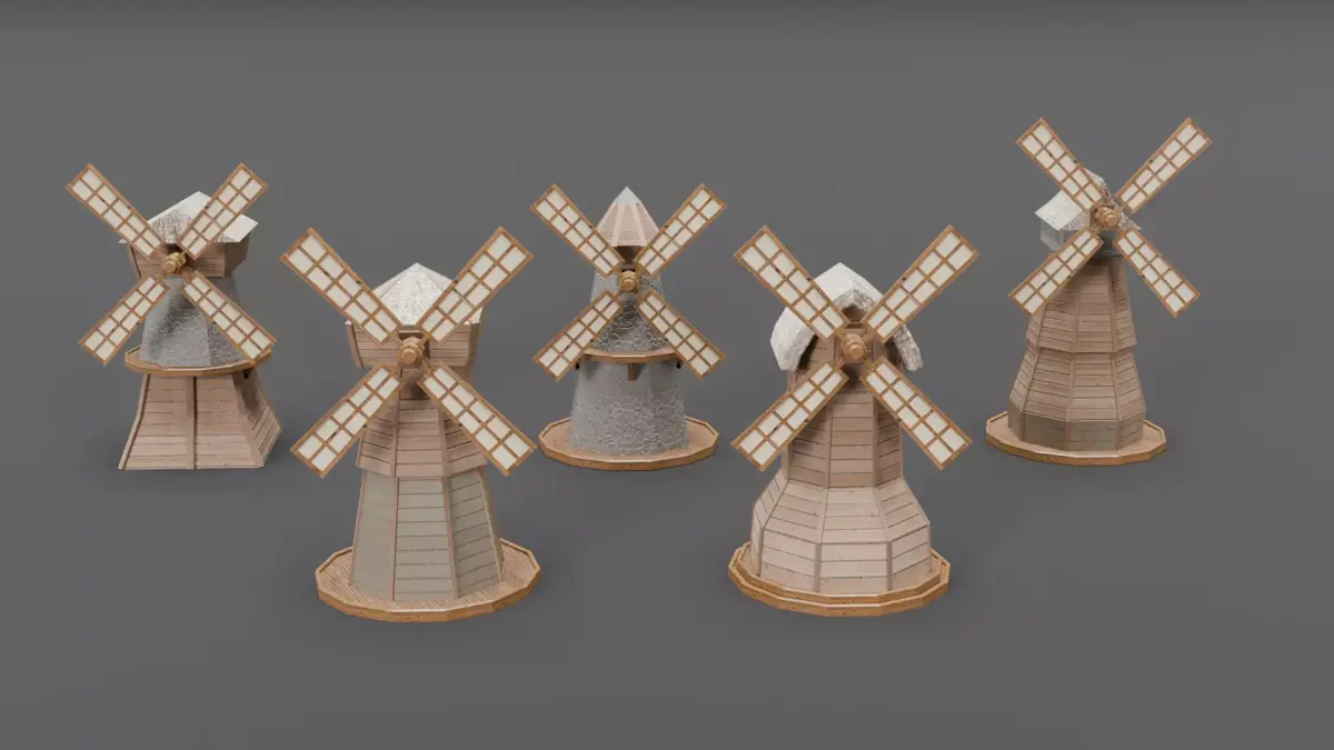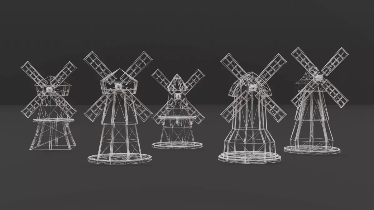 - Polygon count of each model: Windmill_01 - 833 VerticesWindmill_02 - 1065 VerticesWindmill_03 - 976 VerticesWindmill_04 - 870 VerticesWindmill_05 - 894 Vertices